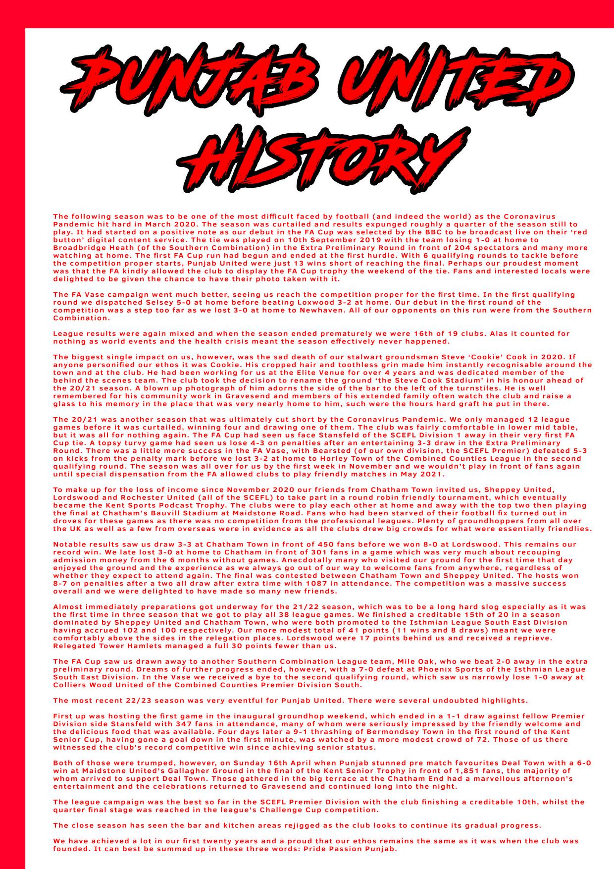 Punjab United Match Programme vs Faversham Town