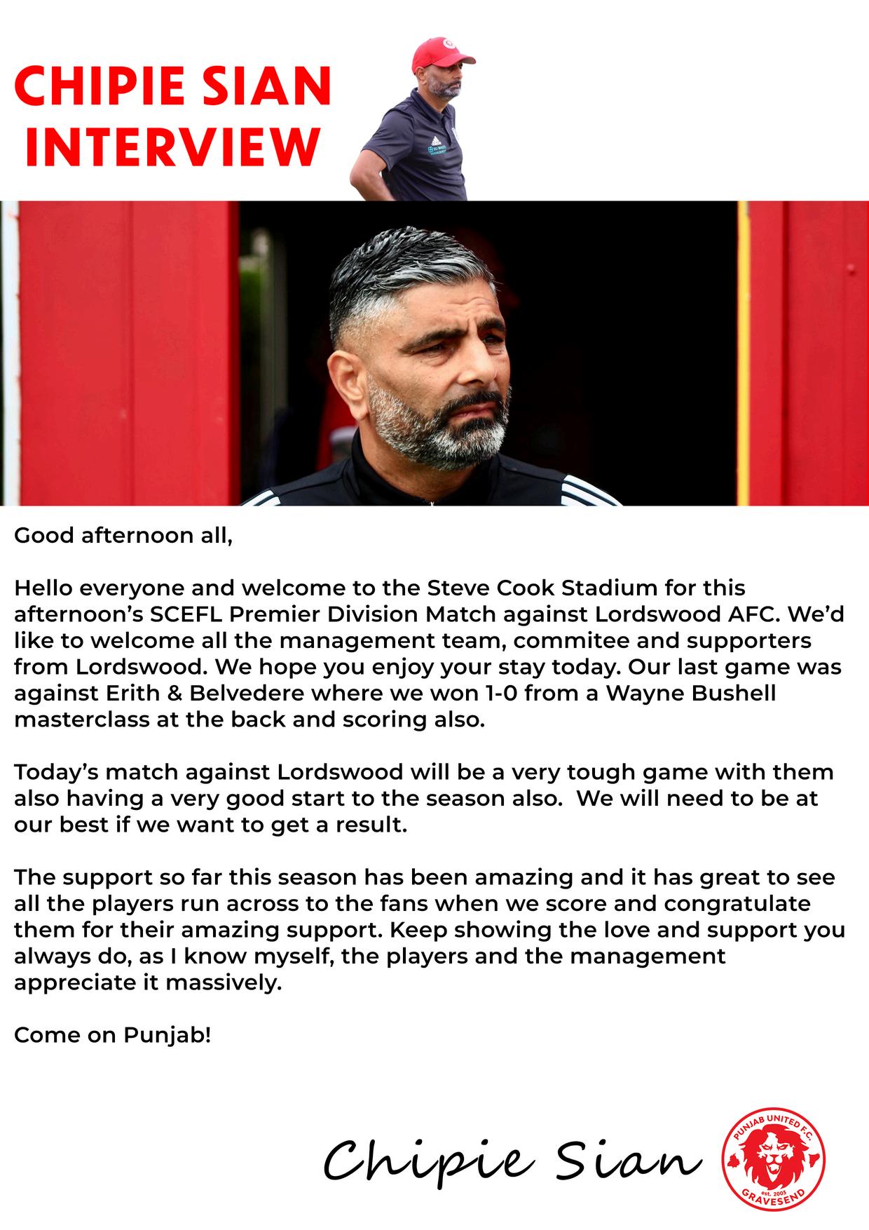 Punjab United Matchday Programme #5 vs Lordswood AFC