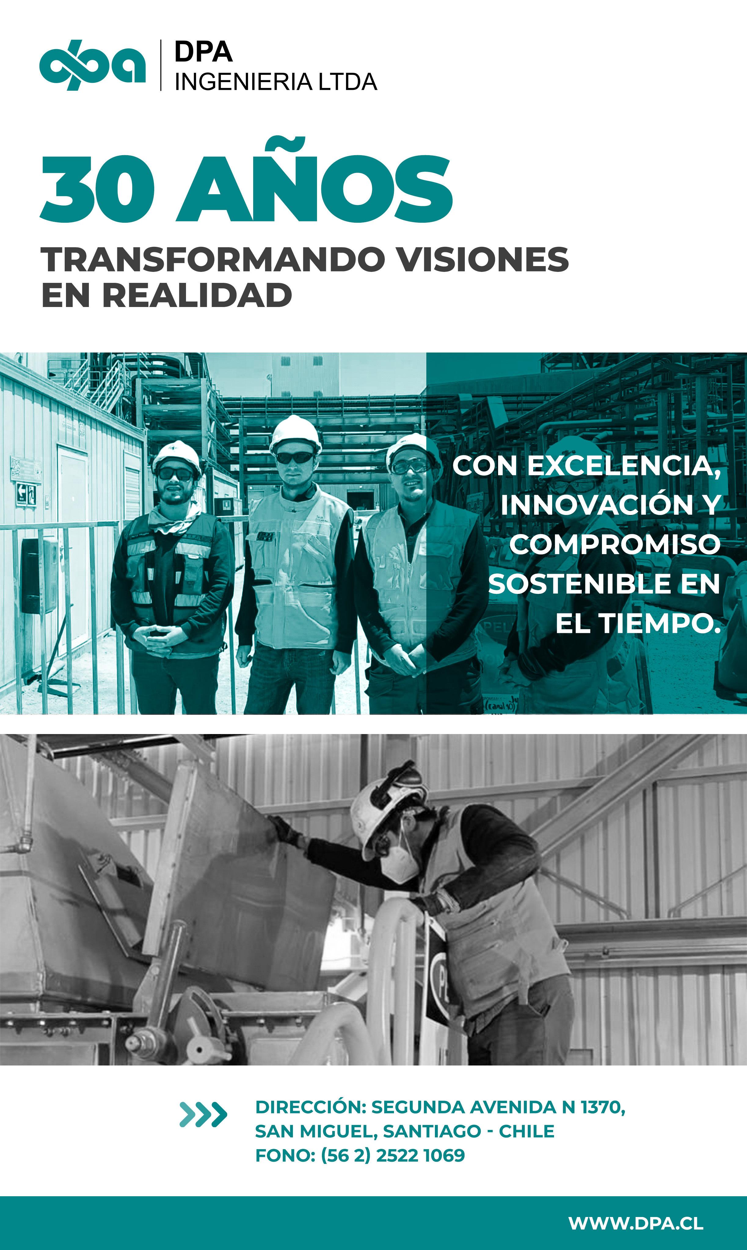 años de trayectoria, especializada en químicos para la industria y enfocada en la minería. La empresa se destaca por contar con laboratorios especializados para los procesos hidrometalúrgicos y procesamiento de minerales. "De esta manera, participamos y apoyamos al cliente a lo largo de todo el proceso minero, demostrando un compromiso sólido con el servicio y desarrollo de soluciones innovadoras y posicionándonos como una empresa líder en el rubro", agregó Araya.