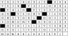 1. Personas zafias y rudas. 2. Rebatiré con argumentos lo que otro asegura. 3. Absurdo, carente de razón. 4. Nombre de cierto condimento muy apreciado por los romanos. Verano en francés. 5. Terminación de diminutivo. Primera letra del alfabeto árabe. 6. Símbolo del niquel. Delinee, señale. 7. El que acumula riqueza por el placer de poseerla. Preposición latina. 8. Lleno de lodo o cieno. 9. Adorador de dioses paganos. 10. Otórgame. Ave fabulosa del paraíso. 11. Embelleciese. 12. Sonido agradable. Abreviatura que usan los farmaceúticos y significa a partes iguales.