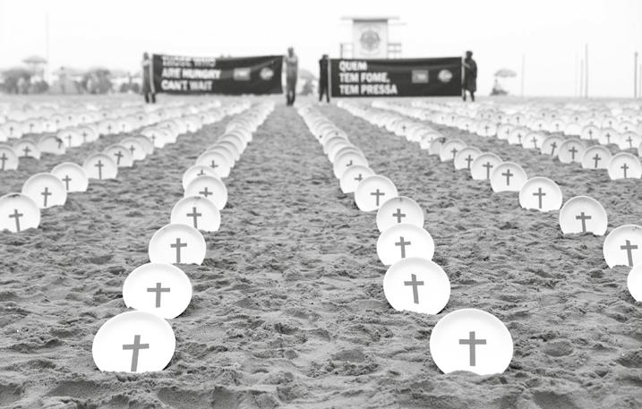 total de 733 platos con una cruz roja fueron colocados por activistas del grupo de derechos humanos Rio de Paz en la playa de Copacabana. Antes de la Cumbre del G20, se instó a los líderes mundiales a combatir el hambre con una manifestación de platos vacíos que representan a los 733 millones de personas que padecen hambre, según datos de la ONU. EFE