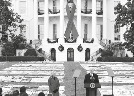 EL PRESIDENTE de Estados Unidos, Joe Biden, habla junto a su esposa, Jill Biden, durante un acto con motivo del Día Mundial Contra el Sida, ayer en la Casa Blanca, en Washington. EFE