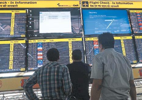 TRABAJADORES INTENTAN REPARAR UNA PANTALLA de información que funciona mal en el Aeropuerto Internacional de Nueva Delhi, India. Empresas e instituciones de todo el mundo se vieron afectadas ayer por una importante interrupción informática en los sistemas que ejecutan Microsoft Windows vinculada a una actualización defectuosa del software de ciberseguridad Crowdstrike. En el Aeropuerto Internacional de Mérida se registraron afectaciones en la operatividad de salidas y llegadas de vuelos nacionales e internacionales.
