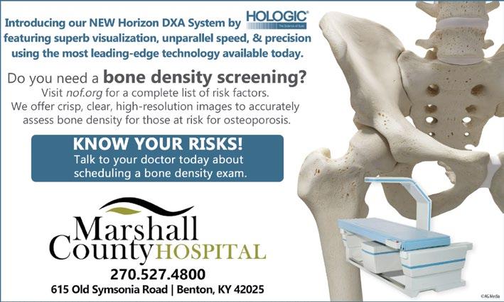 “A DXA scan uses low-dose x-rays to see how strong your bones are,” said Diane Kolenich, ARNP with Marshall County Hospital. “It only takes 10 -20 minutes. Not only does it help diagnose bone-related health issues, but it can also assess the risk of you getting them. Any provider can order a bone scan, but most patients need a referral.”