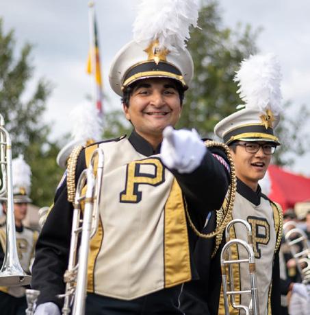 In this edition of Boiler Music Maker, you will read about the new Purdue Chapter of Jazz Education Network, our Sandra Yover Haas String Quartet, the 140th edition of the Purdue “AllAmerican” Marching Band, and more. Hagle Hall, which opened in 2022, continues to transform opportunities for our students. With state-of-the-art rehearsal halls, practice rooms, and plenty of space for student collaboration, students who join our department build a community and make memories that last a lifetime.