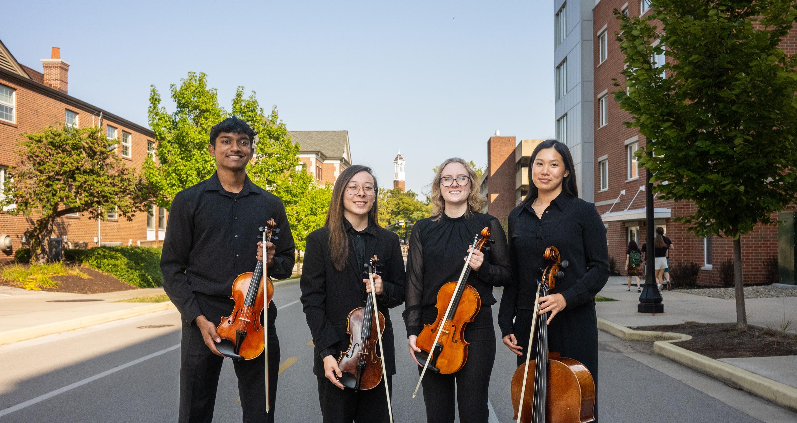 All four students perform in the Purdue Philharmonic Orchestra. The Quartet has performed for The Purdue President’s Council in Naples, Florida and appears annually at The Bug Bowl as the “Cricket Quartet,” for which they were recently featured in Science magazine!
