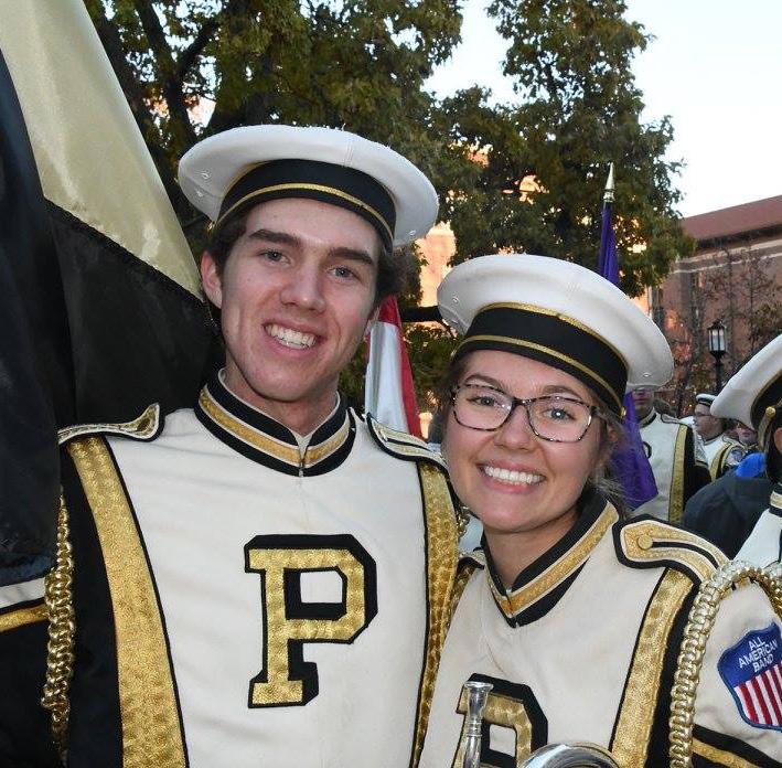 My first connection to Purdue Bands & Orchestras was as a spectator and fan when my older sister Kaley (B.S. in Computer Science ‘17) joined the “All-American” Marching Band, which later convinced me to audition. The time I spent in the department was formative and led to countless memories, many dear friends, and is how I met my lovely wife, Lizzie (B.S. in Chemical Engineering ‘20). We will forever be diehard Purdue fans and love coming back to West Lafayette to cheer on the Boilermakers and support Purdue Bands & Orchestras