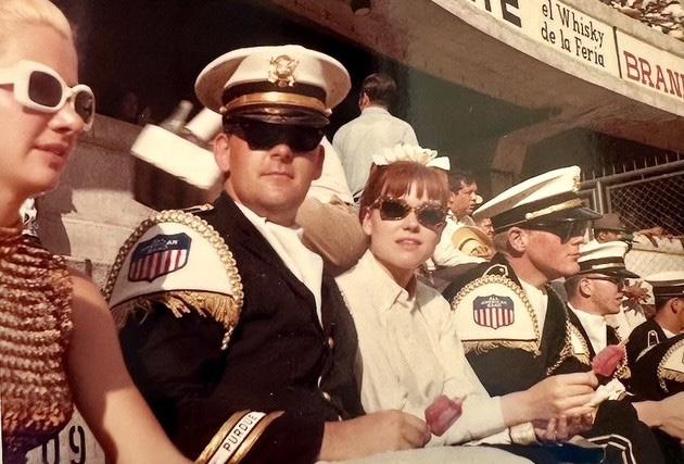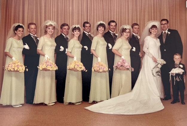 They met in July 1966 and were engaged by March 1967. Jim gave her his Kappa Kappa Psi fraternity pin as a sign of his intentions until he could get an engagement ring. They planned to marry after he graduated in 1969 but hated the long distance, so they moved up the wedding to August 24, 1968—just one week before Jim had to return to campus to “kick ass” at band camp as the tuba section leader.