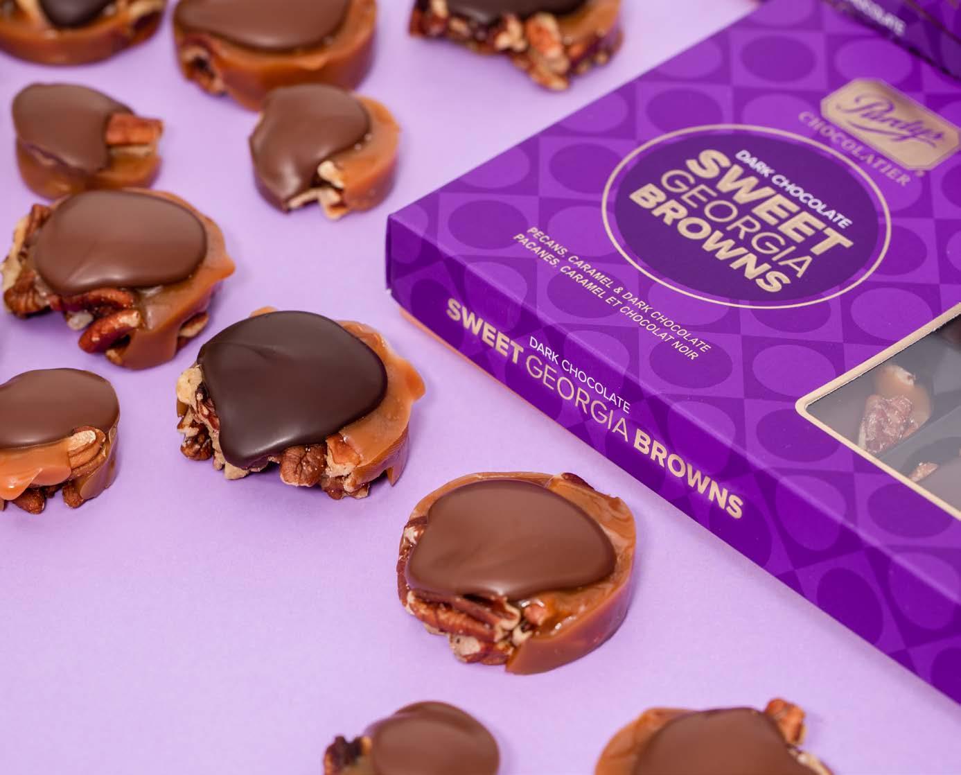 A heavenly trio of crunchy roasted pecans, unbelievably soft caramel and a generous dollop of chocolate. 16001E Milk 8 pc $22 16018G Mini (milk) 15 pc $22 16016G Dark 8 pc $22