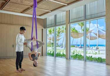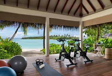 The Ritz-Carlton Maldives, Fari Islands keeps guests moving with an array of exercise options: Fit boxing at the yoga studio, HIIT workouts, aerial yoga, a table tennis tournament and Muay Thai classes.