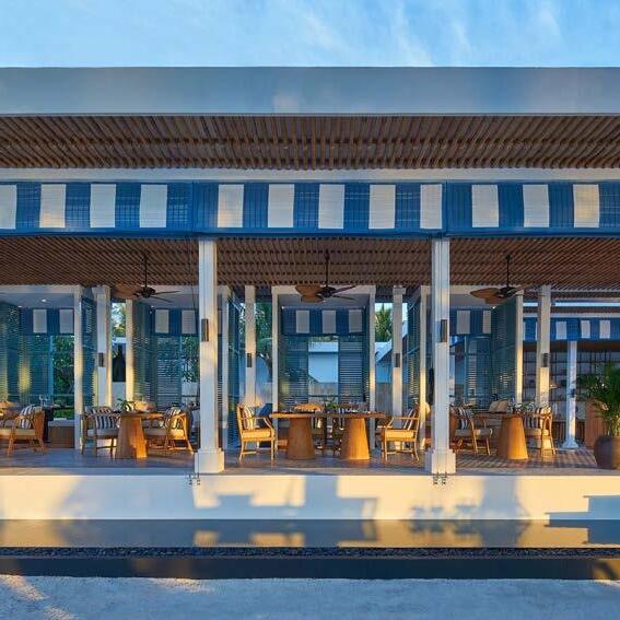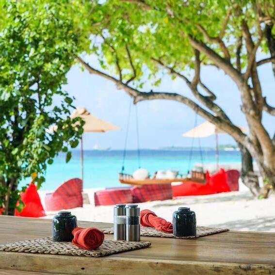 Scattered wooden tables upon the beach invite families to enjoy the laid back, all day dining experience at Thari. Open, relaxed beachfront bites make for ideal intervals during island exploration. The Firepit tempts travellers and their taste buds with tables and chairs carved from sand, and the aromas of flamegrilled food. Set upon the beach and beneath the stars, the dining experience is a feast for both the eyes and palate.