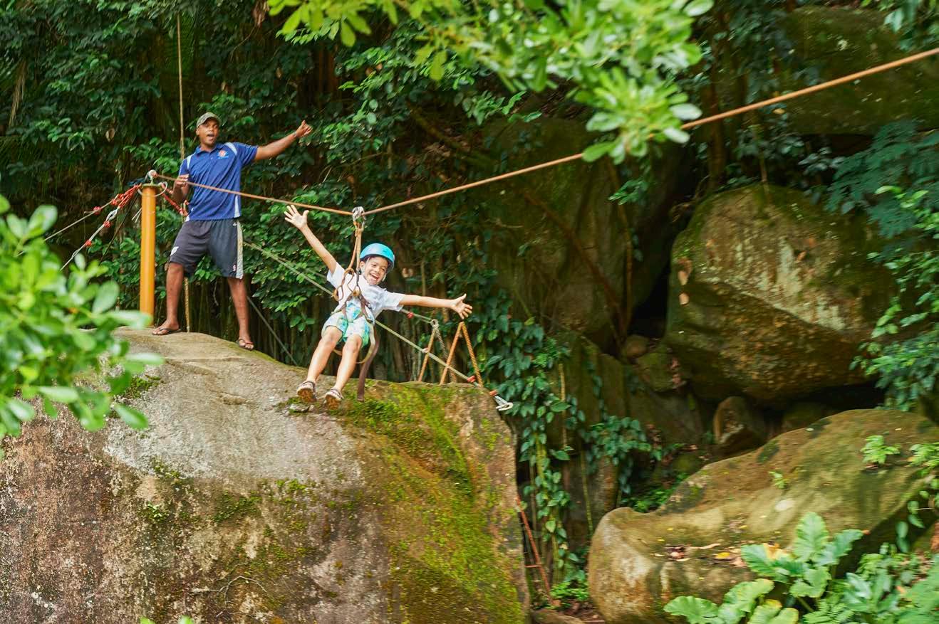 Constance Ephelia motivates adults and children alike to step out of their comfort zone and enjoy a rush of adrenalin with their zip-lining excursion. Glide through the air among the trees, high above the ground with spectacular views on Port Launay.