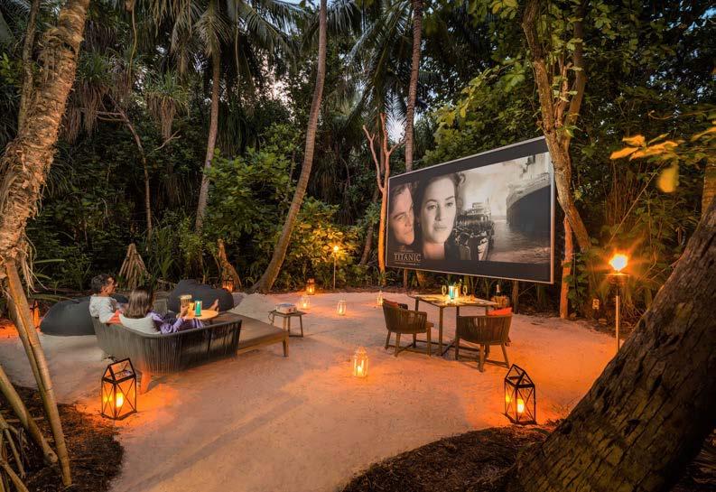The perfect end to a day in paradise at Six Senses Laamu is upon lavish loungers amidst the jungle. Families can book and al-fresco dinner, and put their feet up and relax with their favourite movie as entertainment.