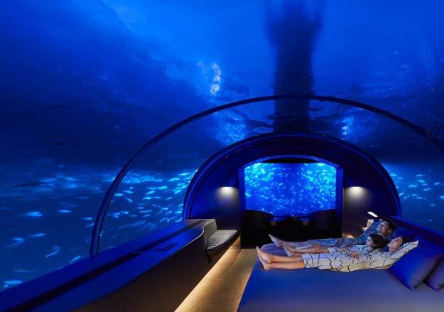 Ask the private butler to set up a tepee for the kids in the undersea suite when staying at the Muraka, so they can enjoy glamping with the fishes, armed with flashlights, a pillow fort and an assortment of treats.
