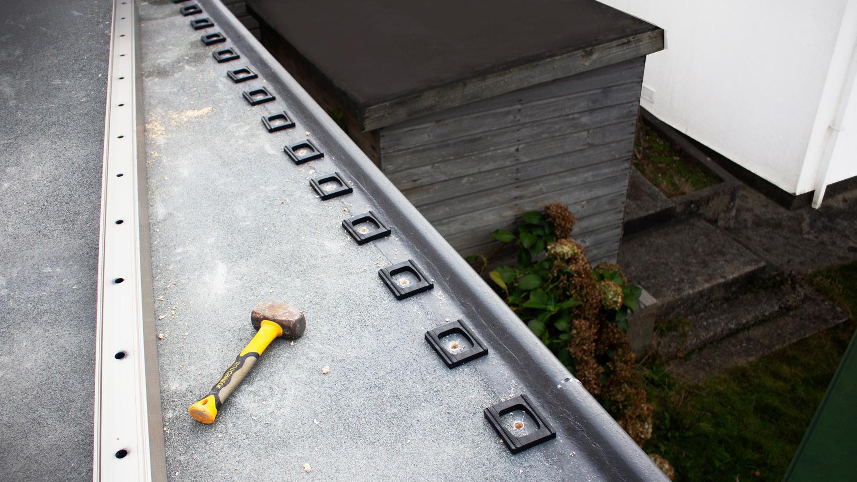 Lay the channel into it’s final position, mark the drill holes and then remove the channel. Drill bolt holes into your substrate starting at 100mm from the first edge and then at 200mm intervals thereafter. Place a drain block over each hole.