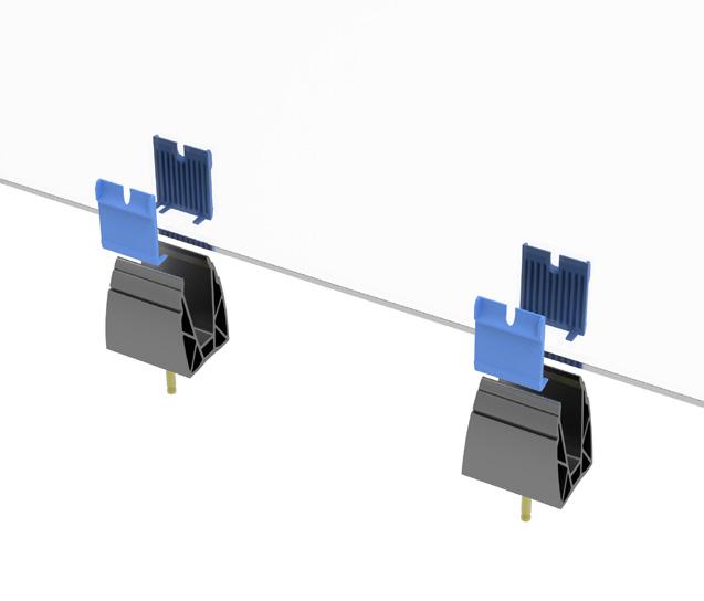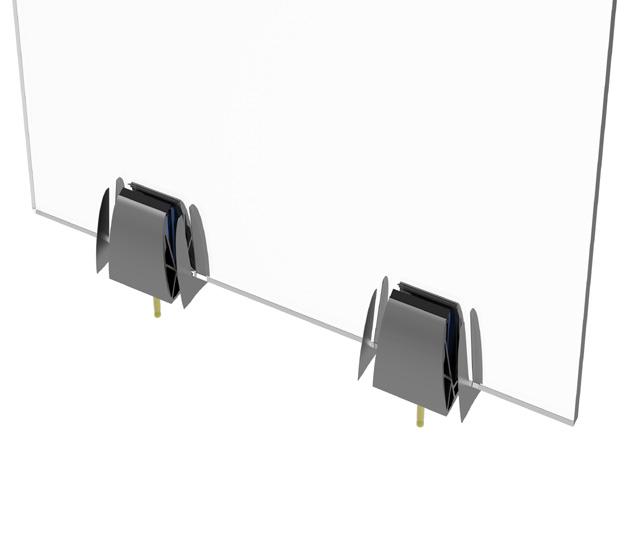 Make up the clamps by slotting the left and right hand sides together. Slide these onto the bottom edge of the glass.