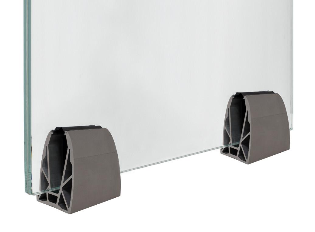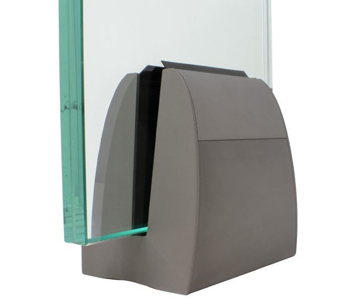 The simple glass clamping mechanism that facilitates easy installation and glass alignment.