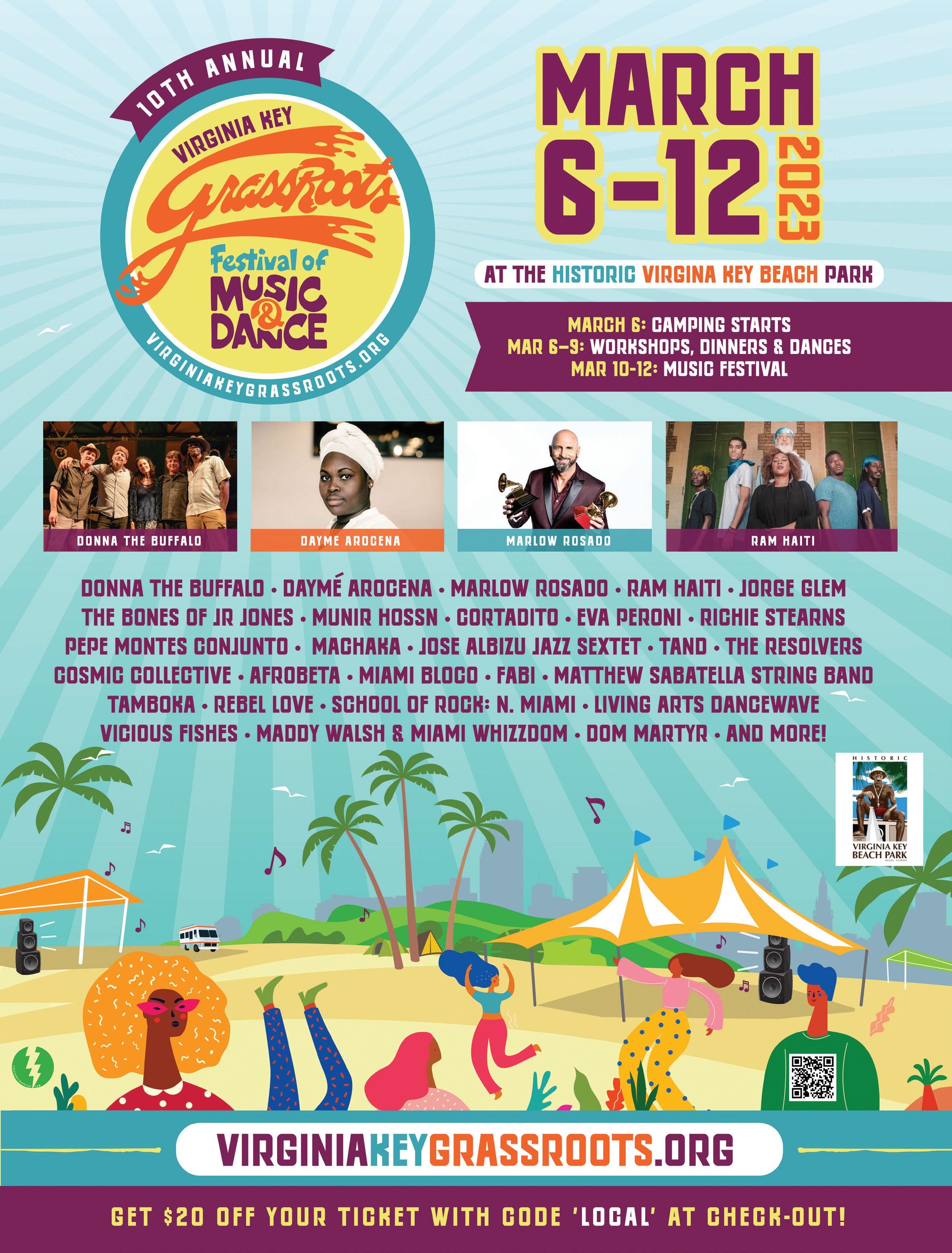 The 10th annual Virginia Key GrassRoots Festival of Music and Dance runs March 6-12 at Historic Virginia Key Beach Park in Miami. virginiakeygrassroots.org