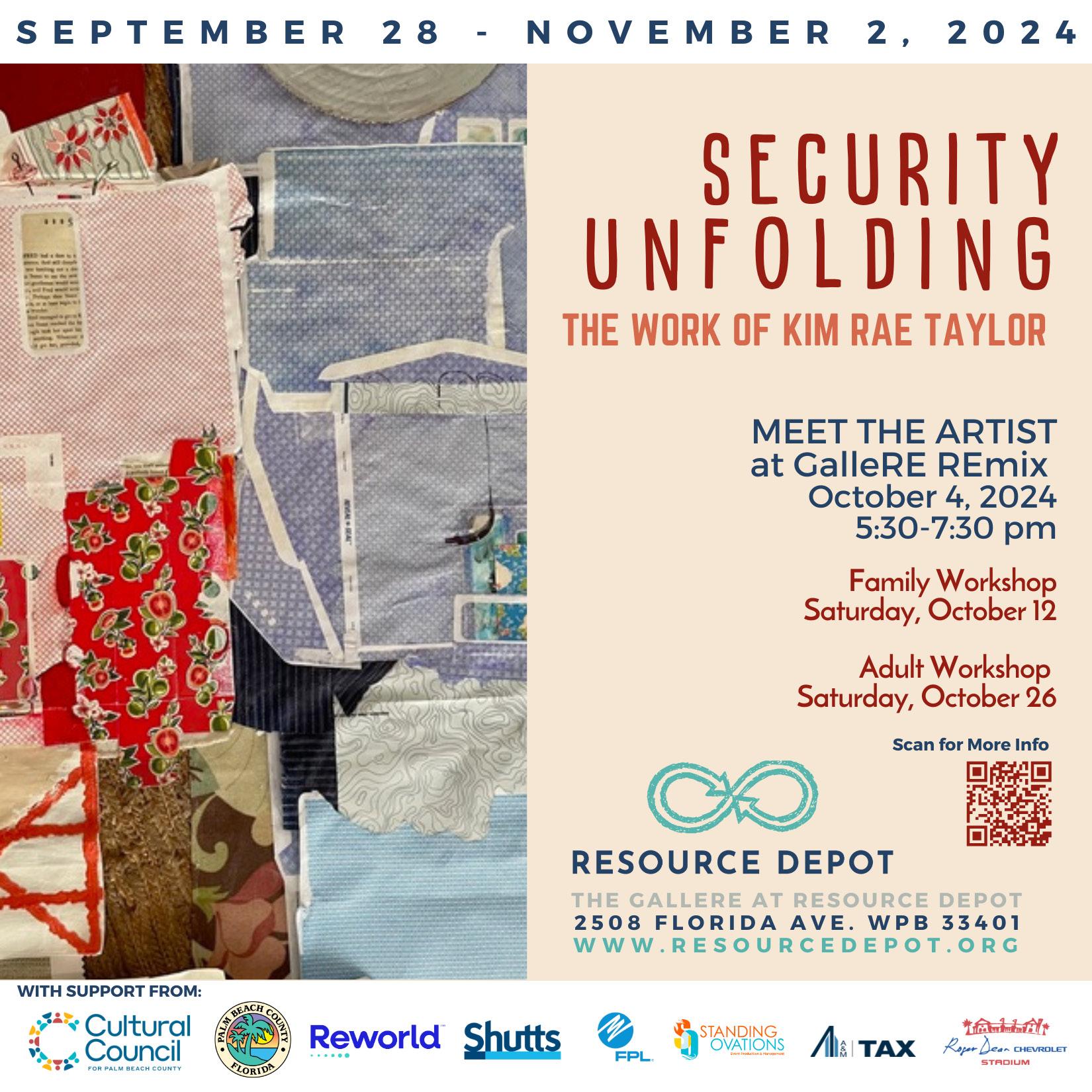 Visiting Katya Neptune’s show, Echoes Unveiled, at her studio in Delray Beach’s Arts Warehouse feels like a reverential act, as though one were entering a blessed place. Eight-foot rolls of fabric unfurl from the rafters bearing photo transfers of small children — images that float mystically before you as you make your pilgrimage through the gallery. At center: a stairwell as altar, and on the steps, messages projected in light from above.