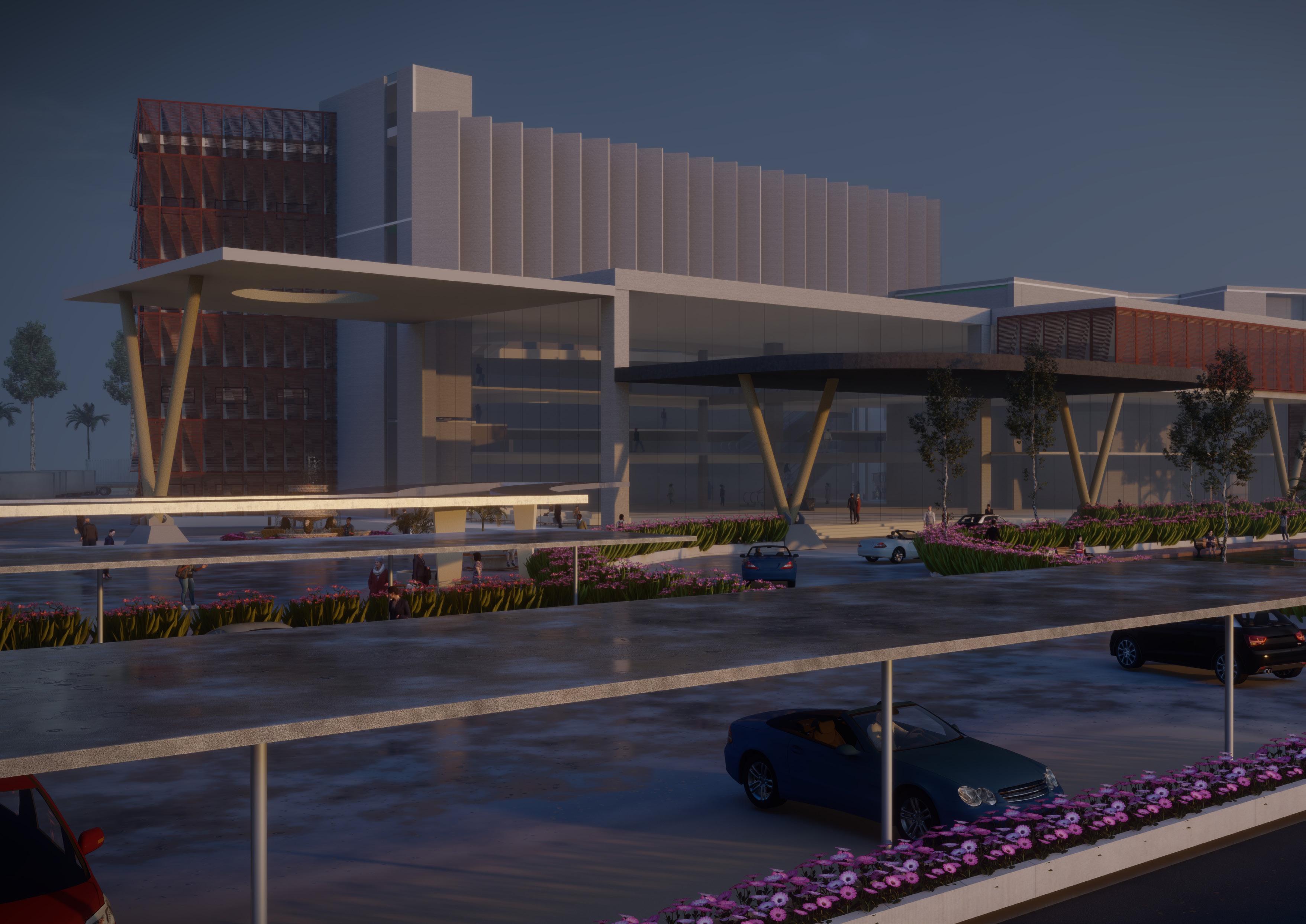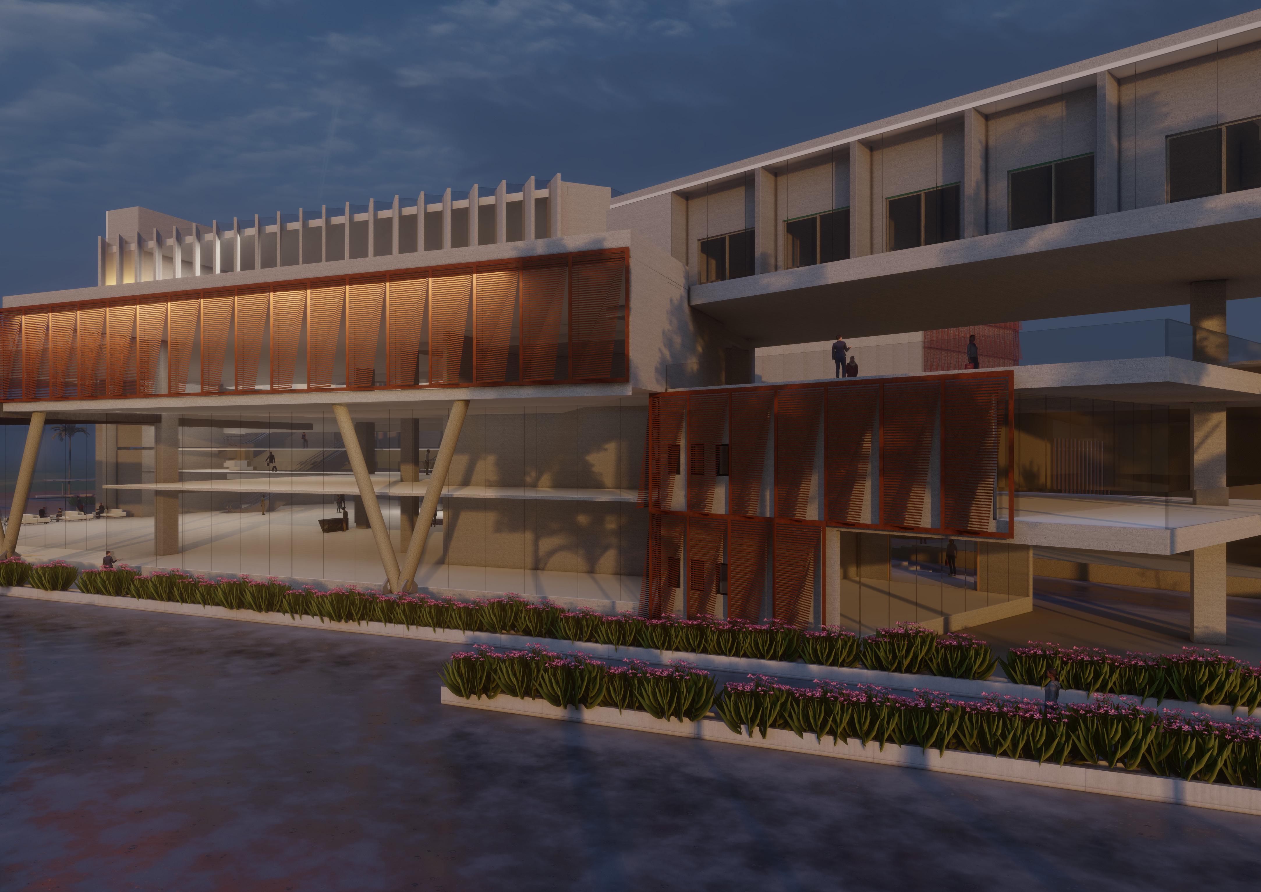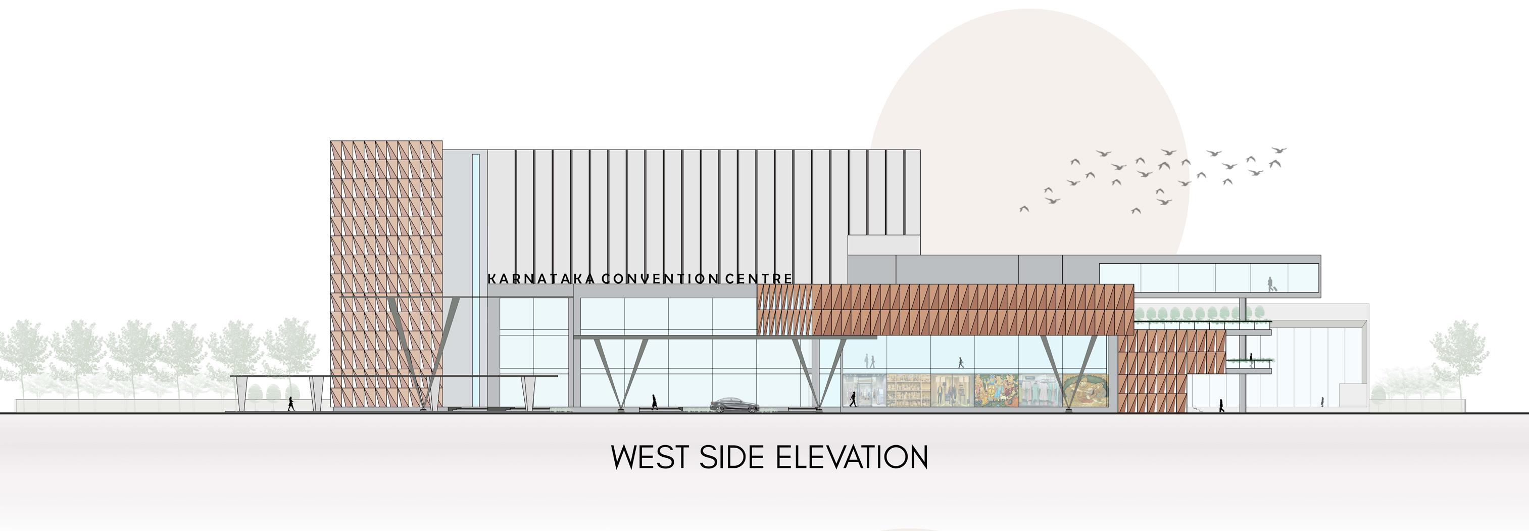 The proposed convention center in Mysore includes exhibition halls, banquet halls, residential suites, banks, and commercial shops. The center is envisioned as a cultural hub for the city. The design explores various aspects of massing and form to create an engaging and functional space.