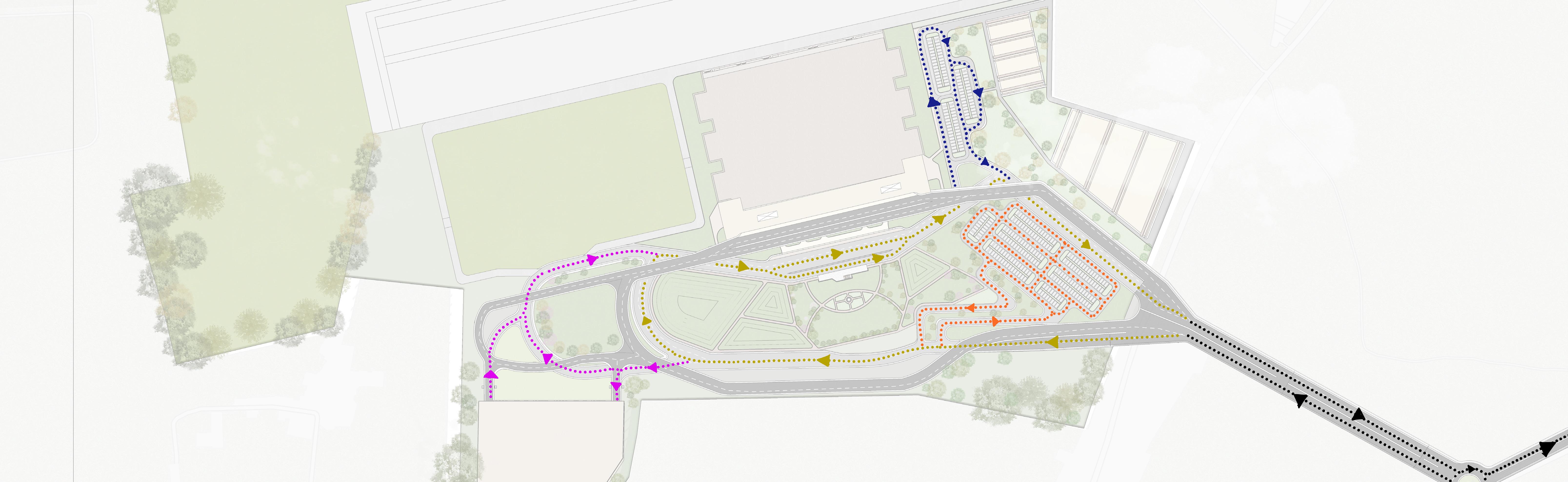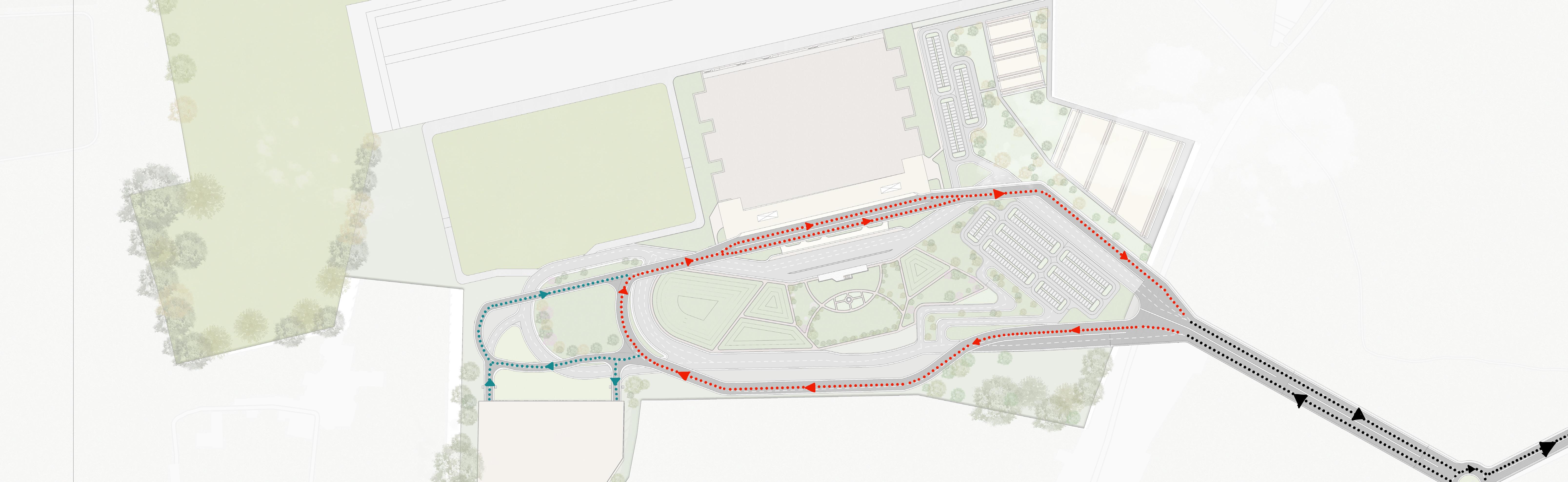 MAIN ROAD TOWARDS ARRIVAL TOWARDS PUBLIC PARKING FROM MLCP TOWARDS EMPLOYEE PARKING