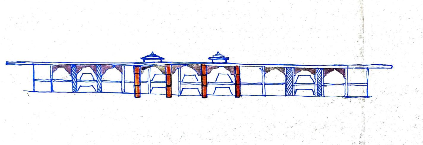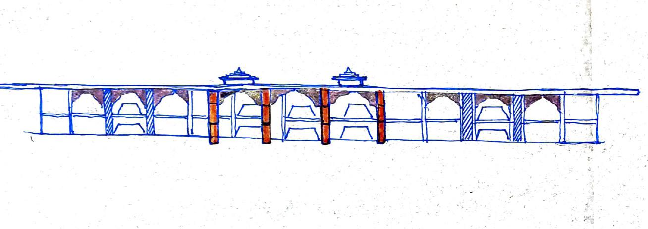 The arrival level is activated with retail stores, F&B outlets, and cab booking facilities, fostering a vibrant commercial interface. Passengers at the departure level can conveniently access these amenities via staircases, lifts, and escalators, ensuring a fluid and interconnected spatial experience. This holistic urban intervention not only enhances passenger convenience but also reinforces the terminal’s role as a cultural and transit hub, embodying Bihar’s architectural heritage and modern infrastructural advancement.