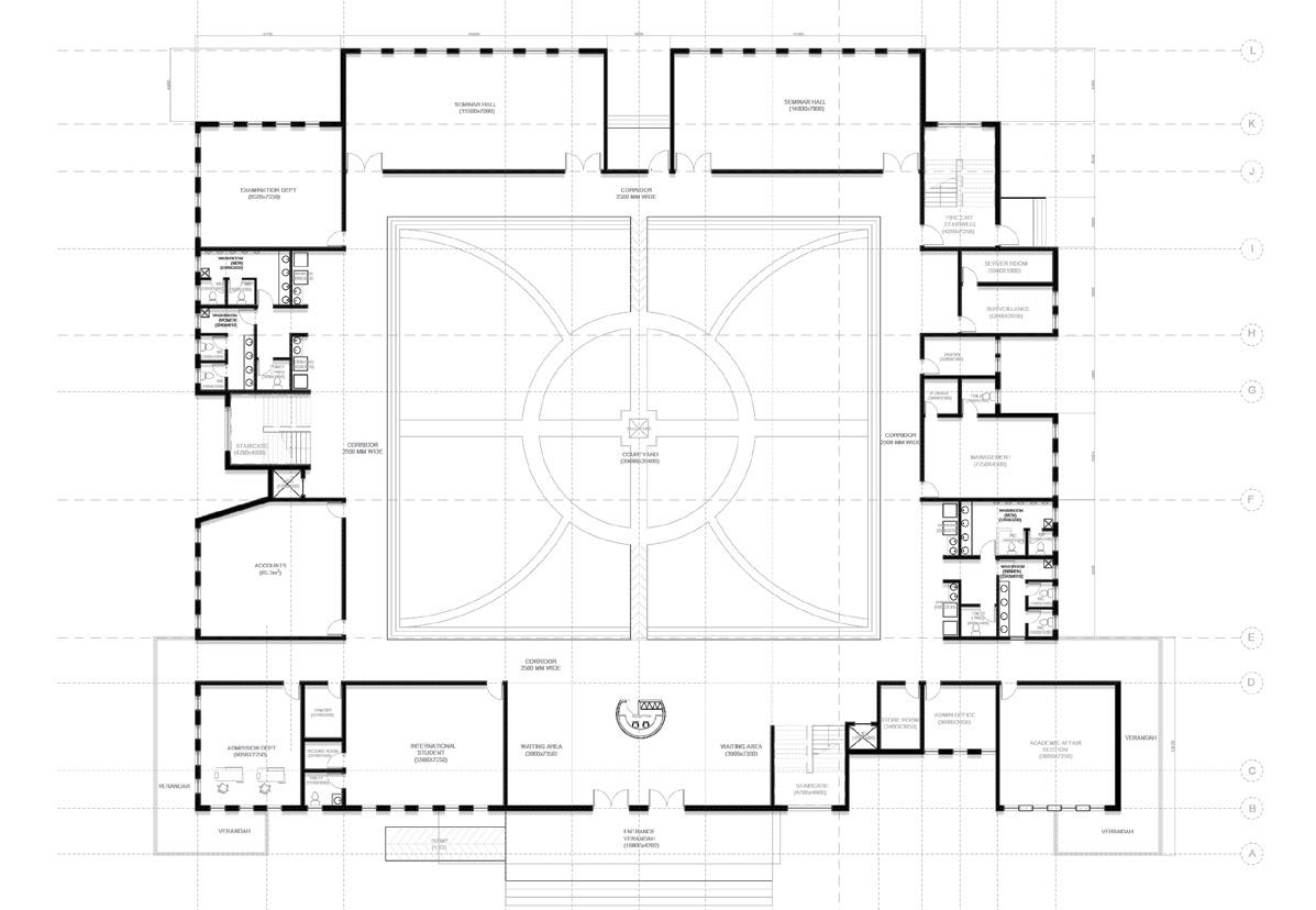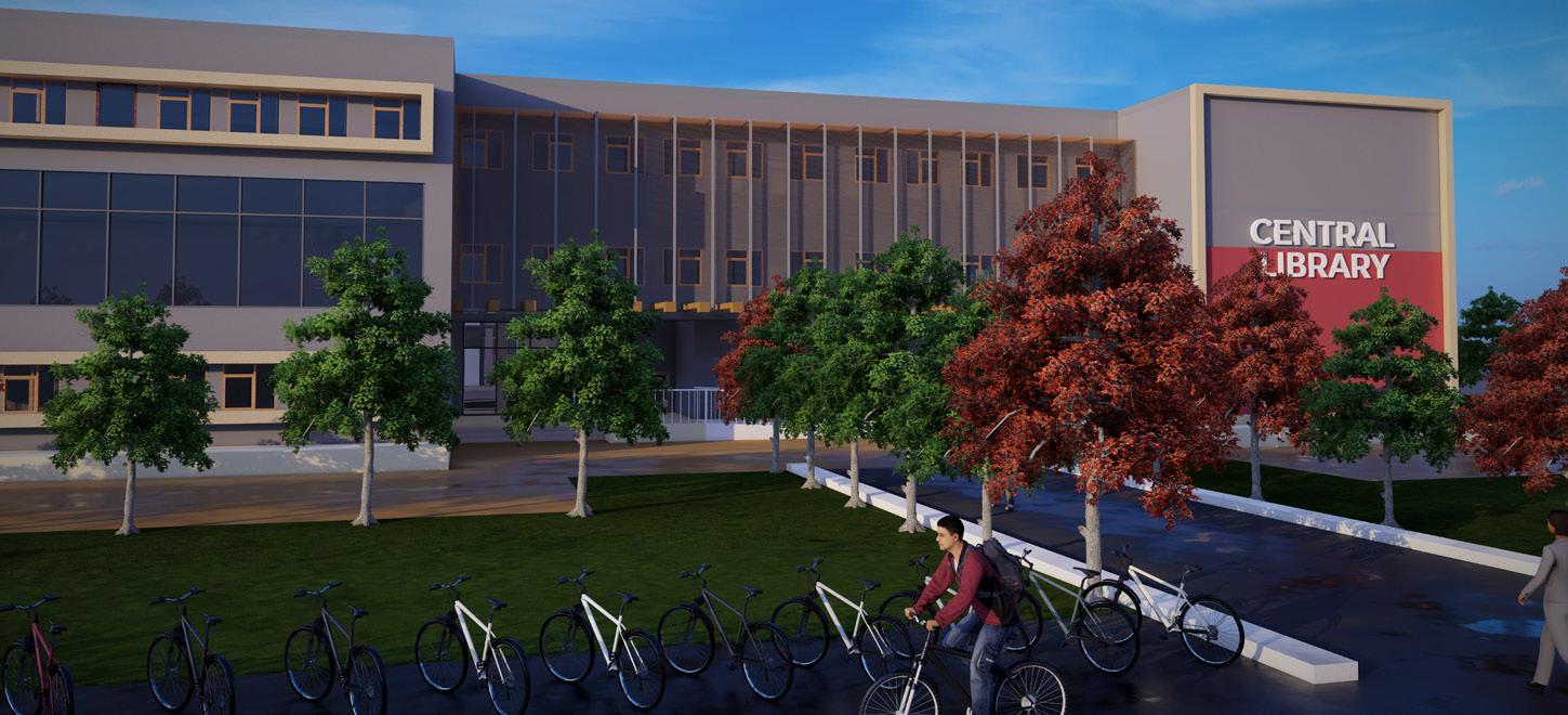 The site is structured into three primary zones, with expansion areas at both ends and the university core centrally placed for connectivity. Academic blocks are arranged around the library for accessibility, with girls’ hostels and staff residences ensuring security.