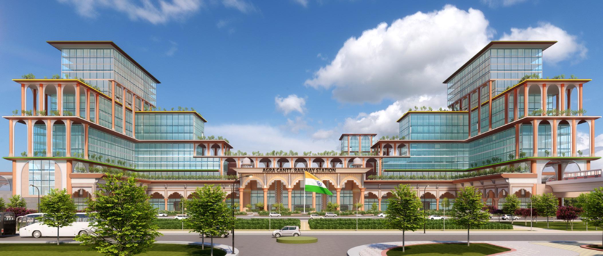 The Agra Cantt Railway Station Hotel Tower project involved the architectural design of hotel towers, blending traditional and modern elements. The design draws inspiration from Udaipur’s architectural language, prominently featuring arches that influence both the façade and the staggered massing of the structure. This approach integrates Agra’s cultural heritage with a contemporary architectural touch, reflecting the city’s identity while offering a modern aesthetic.
