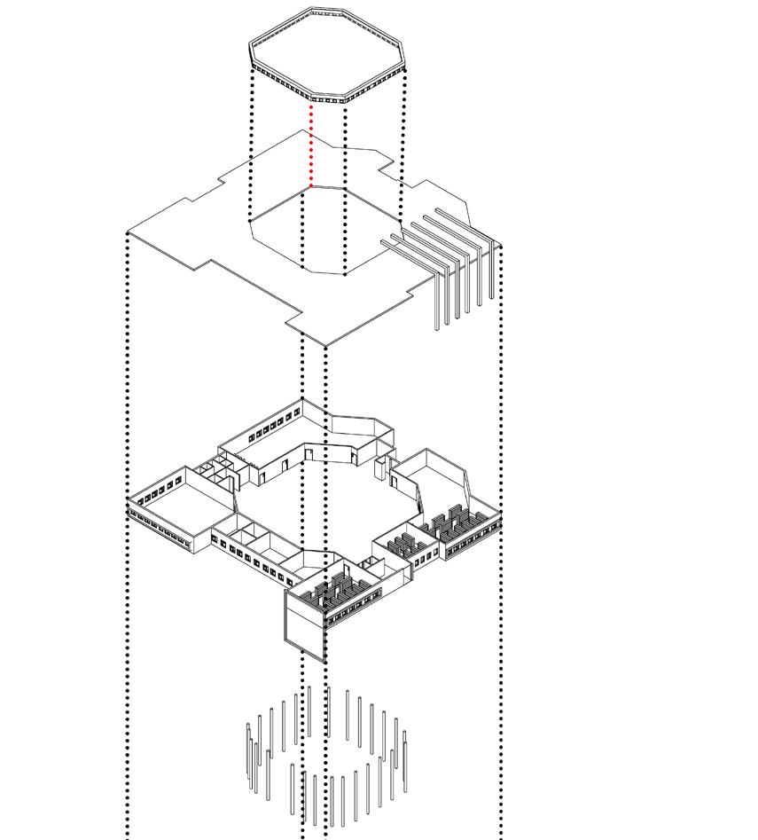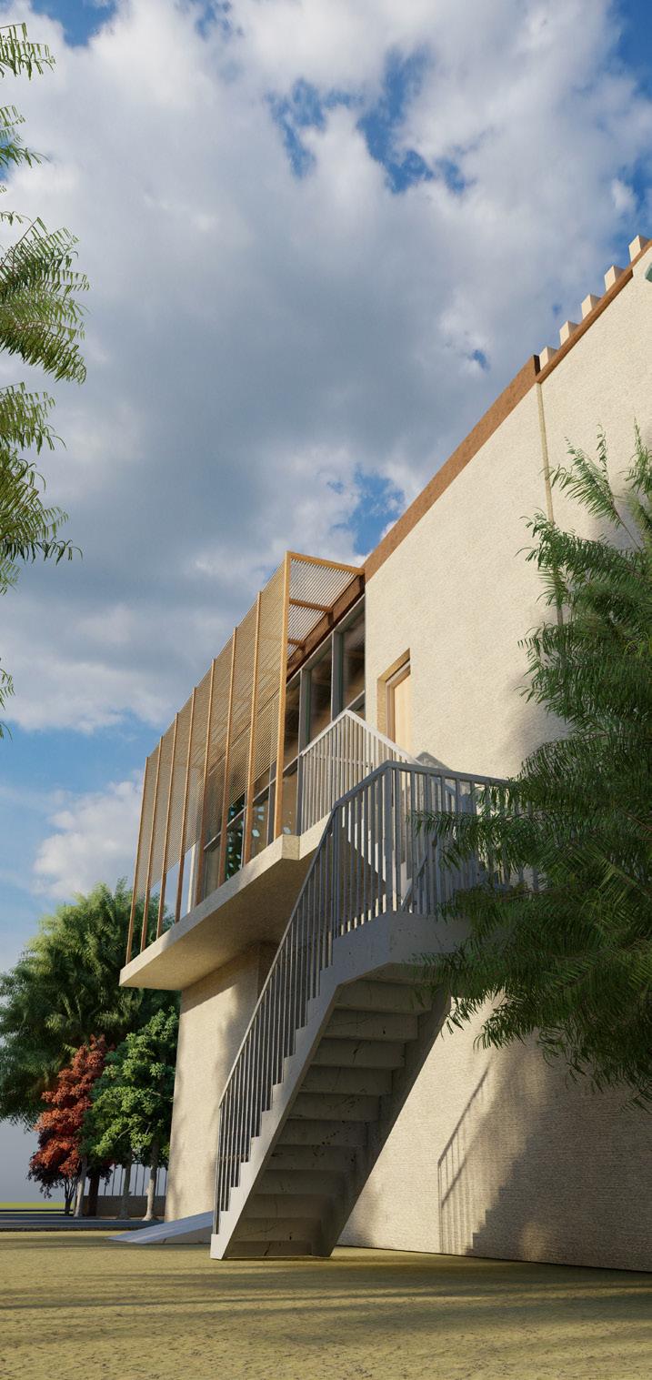 The project adopts a modernist approach while drawing cultural inspiration from the entrance gate of the Kashi Vishwanath Temple. Traditional elements, such as the iconic forms and motifs of the temple, are reinterpreted within a contemporary architectural framework. This fusion creates a design that respects the cultural essence of Varanasi while integrating clean lines, functional forms, and modern materials. The result is a harmonious balance between heritage and modernity, reflecting the spiritual identity of the region in a progressive architectural language.