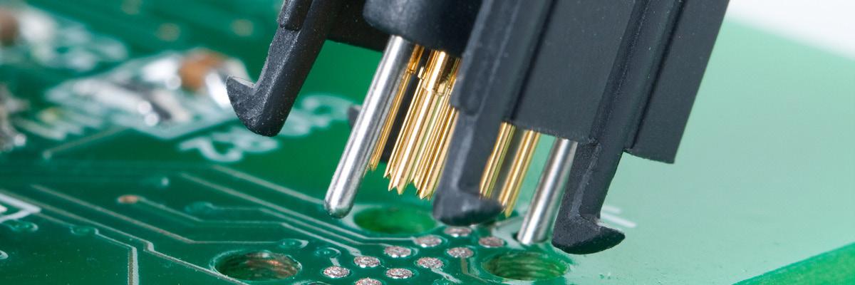 Our patented range of Plug-of-Nails™ spring-pin cables plug directly into a �ny footprint of pads and loca�ng holes in your PCB, elimina�ng the need for a ma�ng header. Space and cost