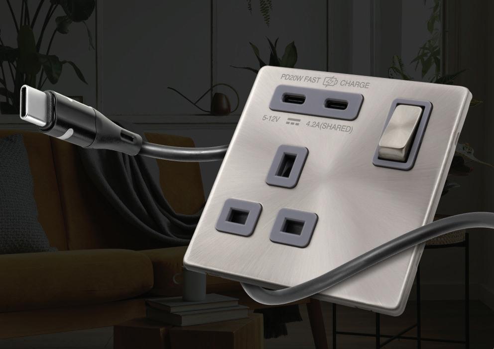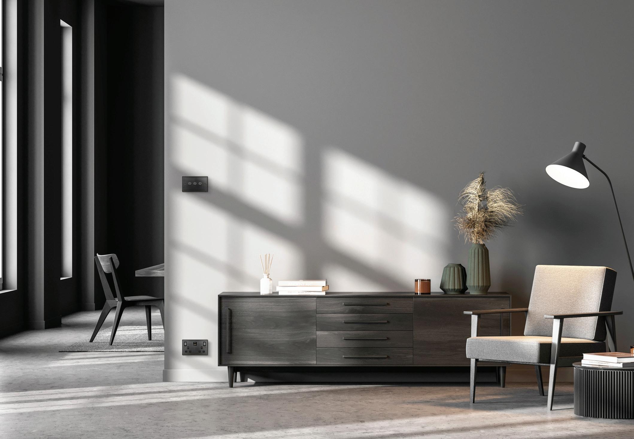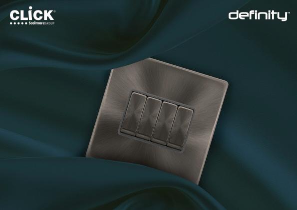 Designed to meet the growing demand for flexibility without compromising on aesthetics, the premium 10AX 4-gang complete switch can be used in areas with limited wall space or in hallways and living areas without chasing the wall. The switch also allows four separate circuits to be controlled from a single size Definity plate. This offers a clear advantage for installers and specifiers, as it removes the need for a twin-size plate and back box, helping to save space while maintaining a clean and streamline finish.
