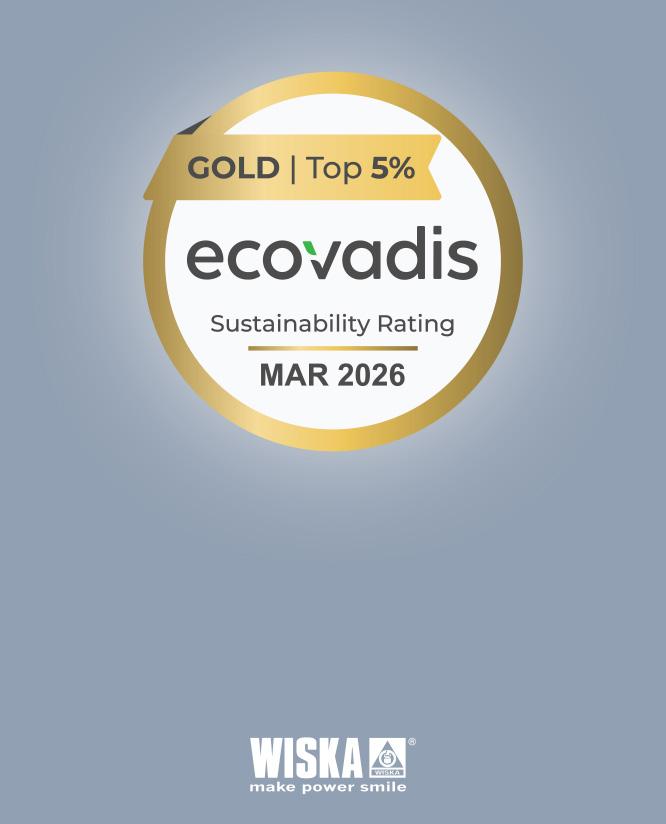 WISKA HAS ACHIEVED Gold status from EcoVadis, the world’s most recognised provider of business sustainability ratings, with an impressive score of 80/100.