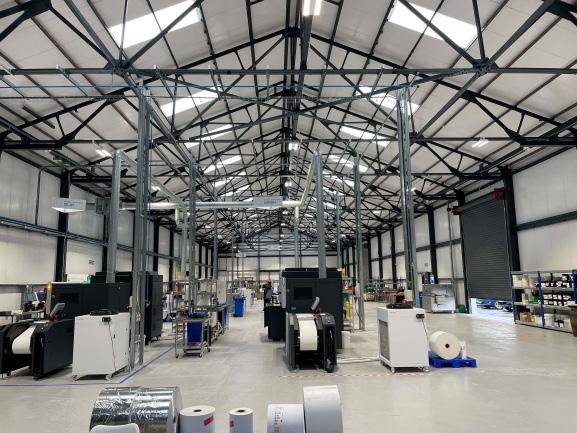 Spirit Label Solutions chose to use Luceco’s Elara Bay, cost-effective LED luminaires ideal for high ceiling mounting positions in industrial and warehouse environments, and surface mounted LuxPanels for the office spaces.