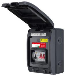 • IP66 Enclosure with 100A Main Switch, 40A 30mA double pole bidirectional RCBO Type A and Type 2 SPD