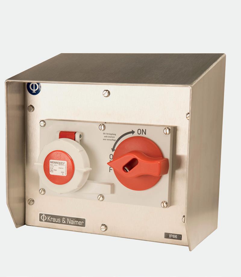 • 2 Drucktaster bis 1 A mit roter bzw. grüner Ringbeleuchtung, Not-Halt (2 Öffner)
