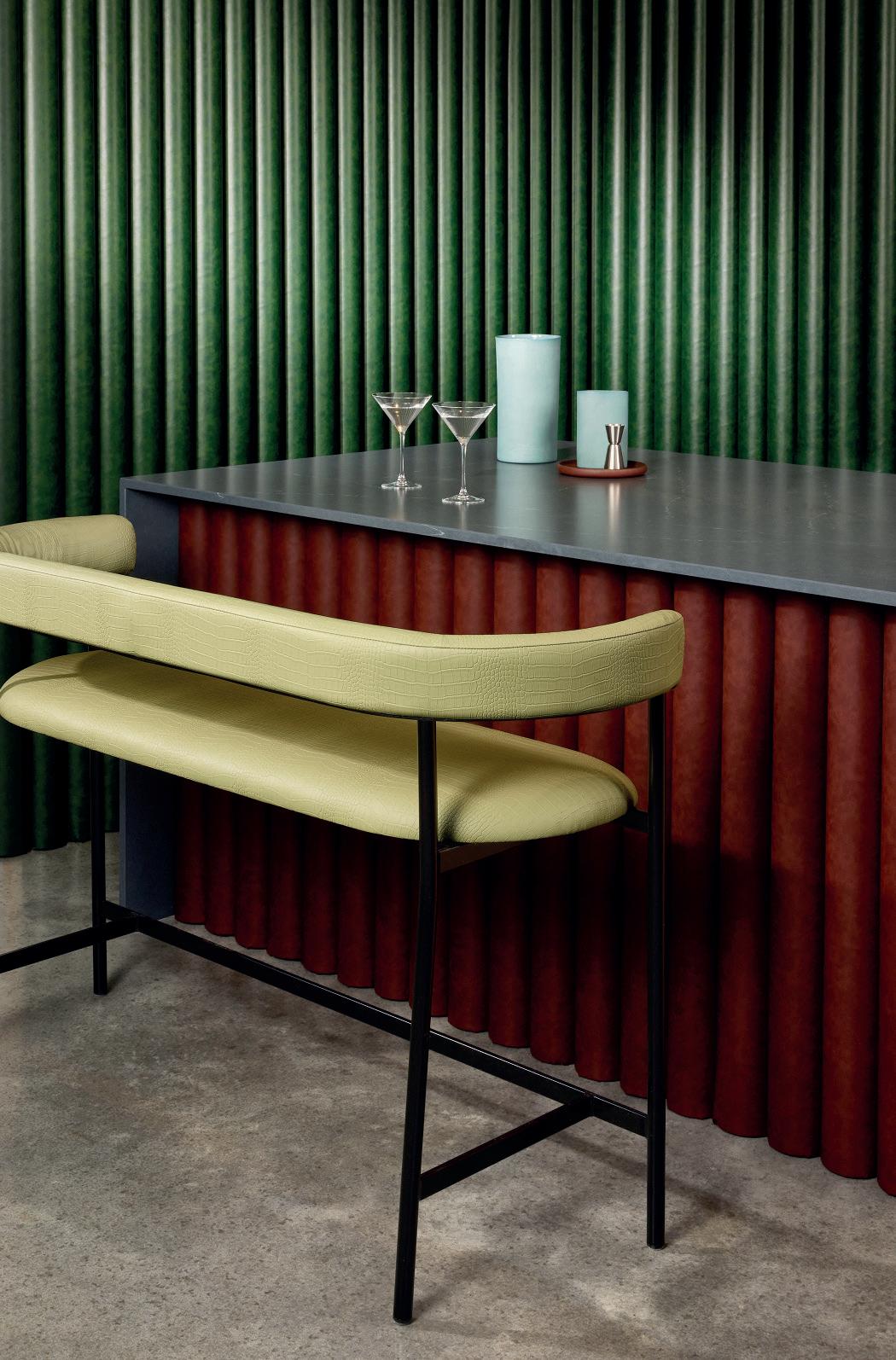 Kirkby Design’s iconic Laser Eco quality is given the animal treatment in HIDE, a range of three embossed and one printed faux leather. The four designs: ostrich, crocodile, cow and stingray, provide cruelty-free ‘leathers’ that are both durable and practical, perfect for use in hospitality venues.Free from harmful chemicals, HIDE is vegan and Oeko-Tex certified. The vegan faux leathers collection are made using BIOVYN™, a bio-attributed PVC which uses 100% renewable carbon feedstock, reducing greenhouse gas emissions by 90% compared to the production of fossil fuel-based PVC. Instead of traditional ethylene from fossil fuels, it utilises bioattributed ethylene, sourced from CTO (Crude Tall Oil), a second-generation feedstock found in the forestry industry. The bio-attributed PVC is certified based on the quantity of renewable feedstock used alongside fossil feedstock.
