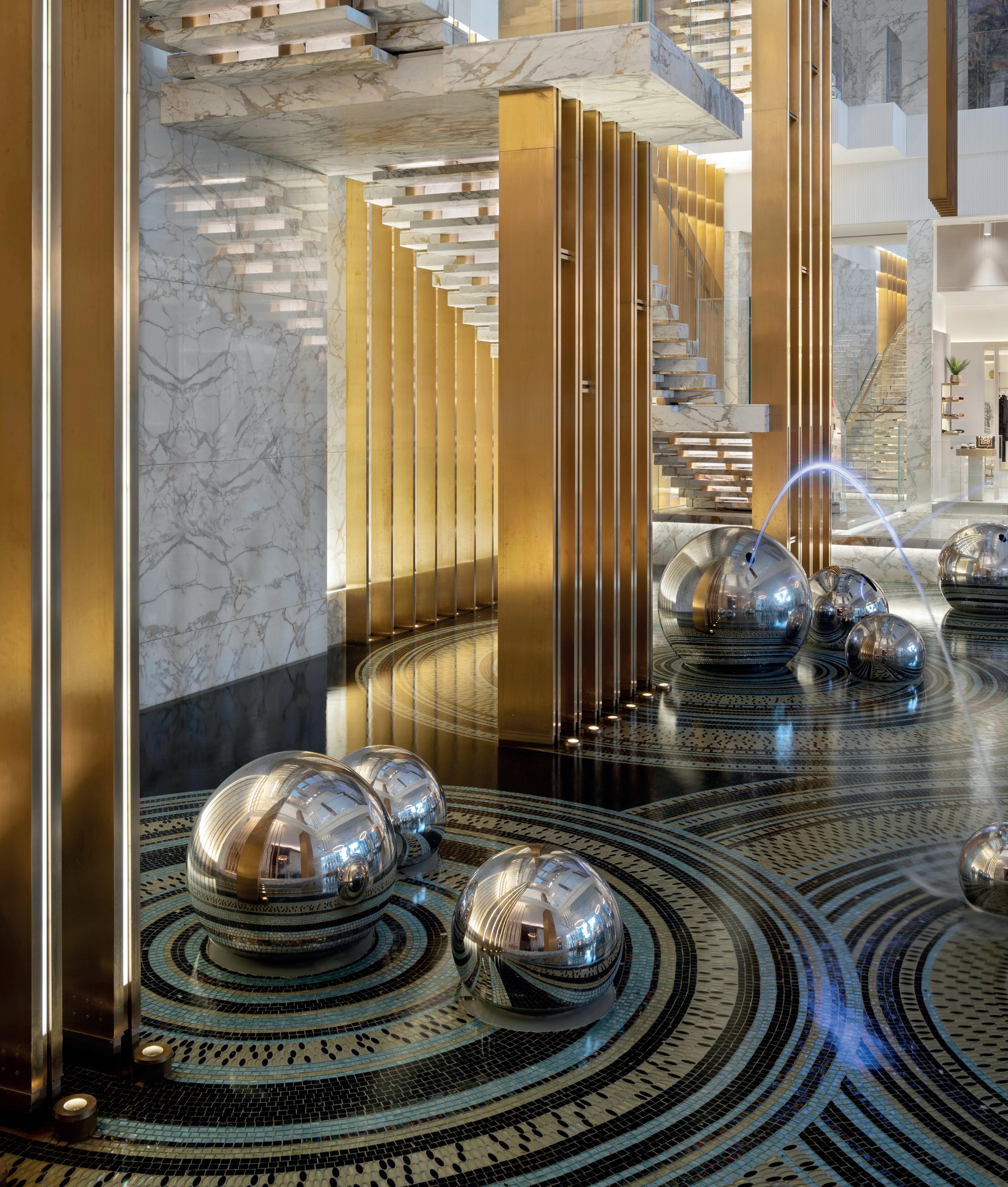 5. IVAN BLACK SCULPTURES Ivan Black is a kinetic sculptor based in Wales. We discovered him via Instagram and commissioned his largest ever work for the lobby at Nobu Hotel Portman Square. The work at Nobu Portman is a huge 8-meterlong sculpture in polished stainless steel that hangs from the ceiling and slowly moves throughout the day, creating everchanging patterns and shapes. It really helps to activate the double-height atrium space and is a true example of craftsmanship and simplicity.