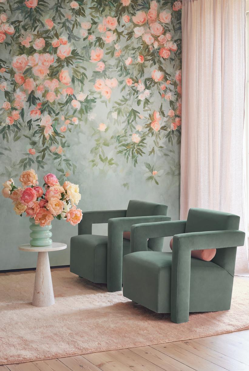 A living artwork, the ever-changing landscape of nature and the beauty that lies within it is at the heart of Romo’s Ottavia wallcoverings collection. These wallcoverings are an interpretation of the beautifully playful and atmospheric relationship between light and nature. Seven designs capture the essence of the outdoors through expressive brushstrokes, intricate details and nuanced colour palettes. A cascade of painterly roses and a diffused landscape celebrates artistic spontaneity, while tropical fronds, trailing berries and delicate gingko leaves are rich with elegant detail. Subtle but significant textures and considered dustings of metallic, add a final flurry of intrigue and sophistication to this memorable offering of wallcoverings.