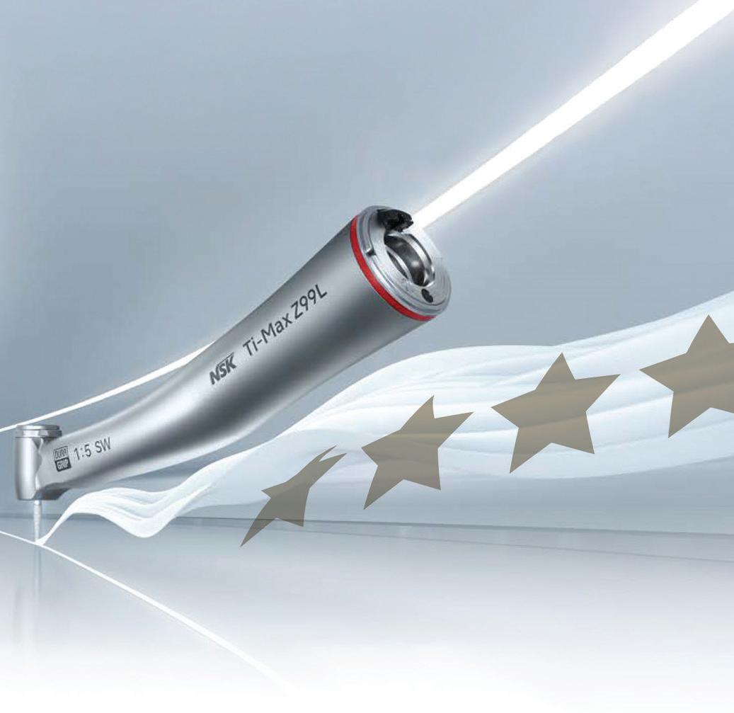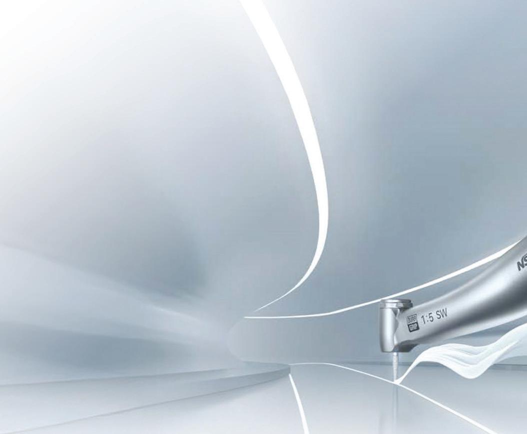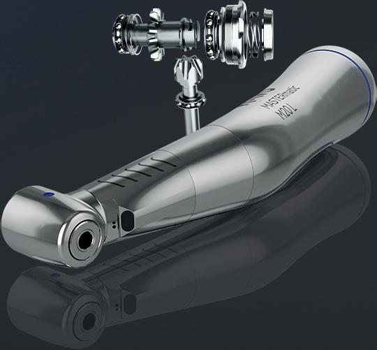 Insulated contra angle with super mini-head and slim neck provides convenient usage and free eld of view