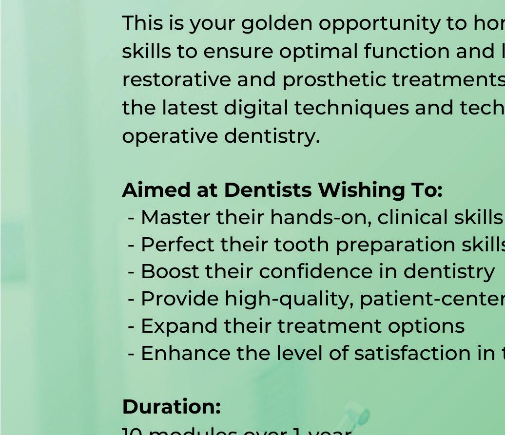 practices aiming to modernise and expand their reach. His passion and expertise when it comes to team culture will be especially pertinent for dental practice owners, who often face the challenge of instilling a cohesive ethos while also focusing on their clinical role.