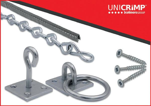 Developments also include the Catenary Wire, Jack Chains and associated accessory products. Catenary wire is used to create an overhead catenary to support pipes, banners, cables and lighting, for example. The Catenary Wire range comprises two lengths of 3mm galvanised steel wire rope (50 metres and 30 metres). Included in the Catenary accessories range are 3mm zinc electroplated steel wire rope grips; 3mm wire rope eyelets; M8 zinc plated strainer adjustable rigging screws; zinc electroplated steel wire hook wall plates and zinc electroplated steel wire ring plates.