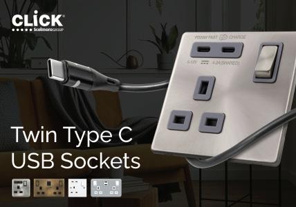 The new Twin Type C USB Sockets are available across Click Scolmore’s extensive wiring accessory portfolio, including Deco, Deco Plus, Define, Definity, Mode, Part M, Polar, Metal Clad, and Metal Clad Pro. www.scolmore.com