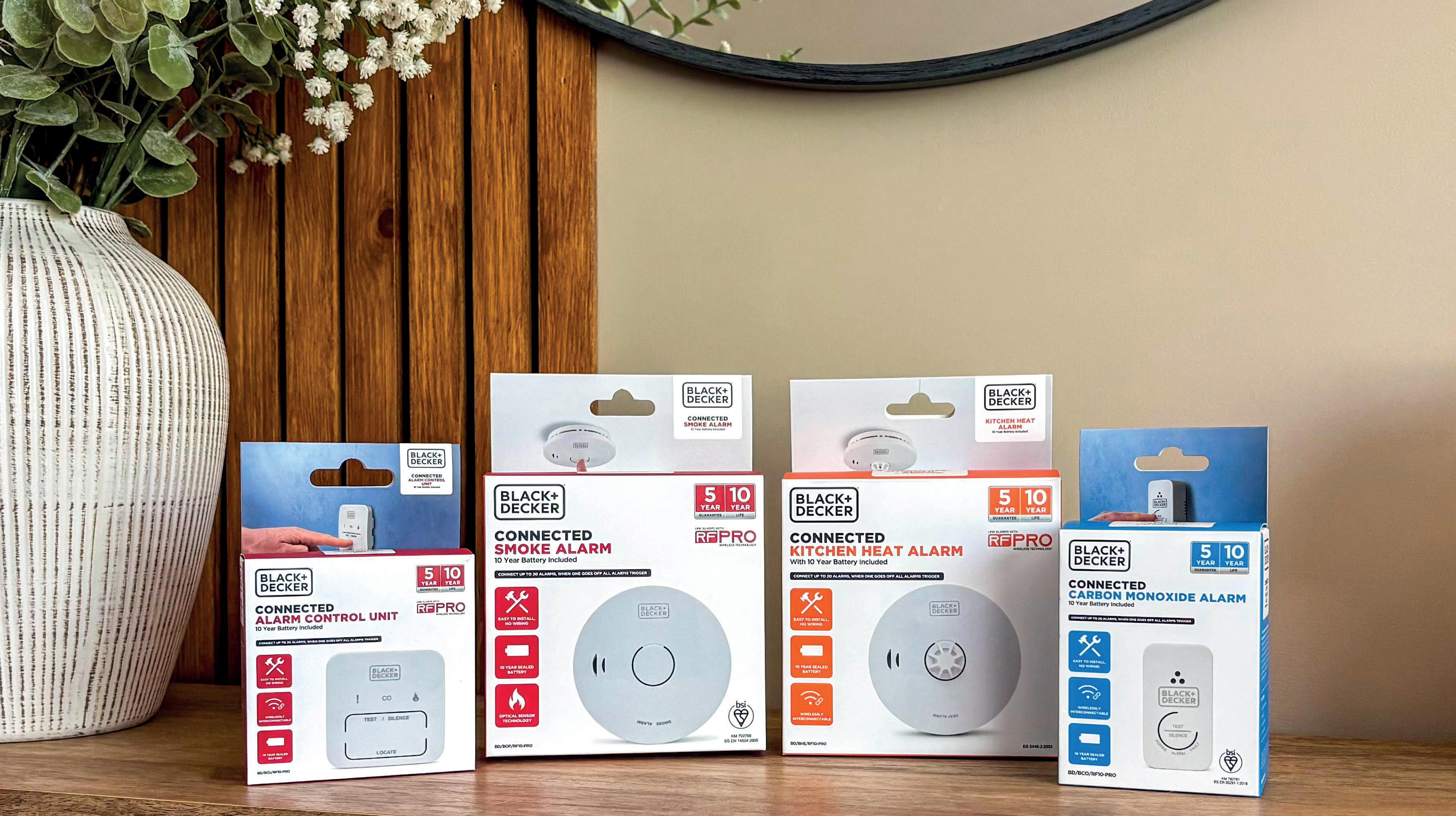 BLACK+DECKER alarms combine advanced safety with effortless installation. Our range includes battery and interlinked mains powered smoke, heat, and CO alarms, available as standalone units or wirelessly connected systems for whole home protection. With sleek designs and 3rd party trusted performance, you get complete coverage and peace of mind.