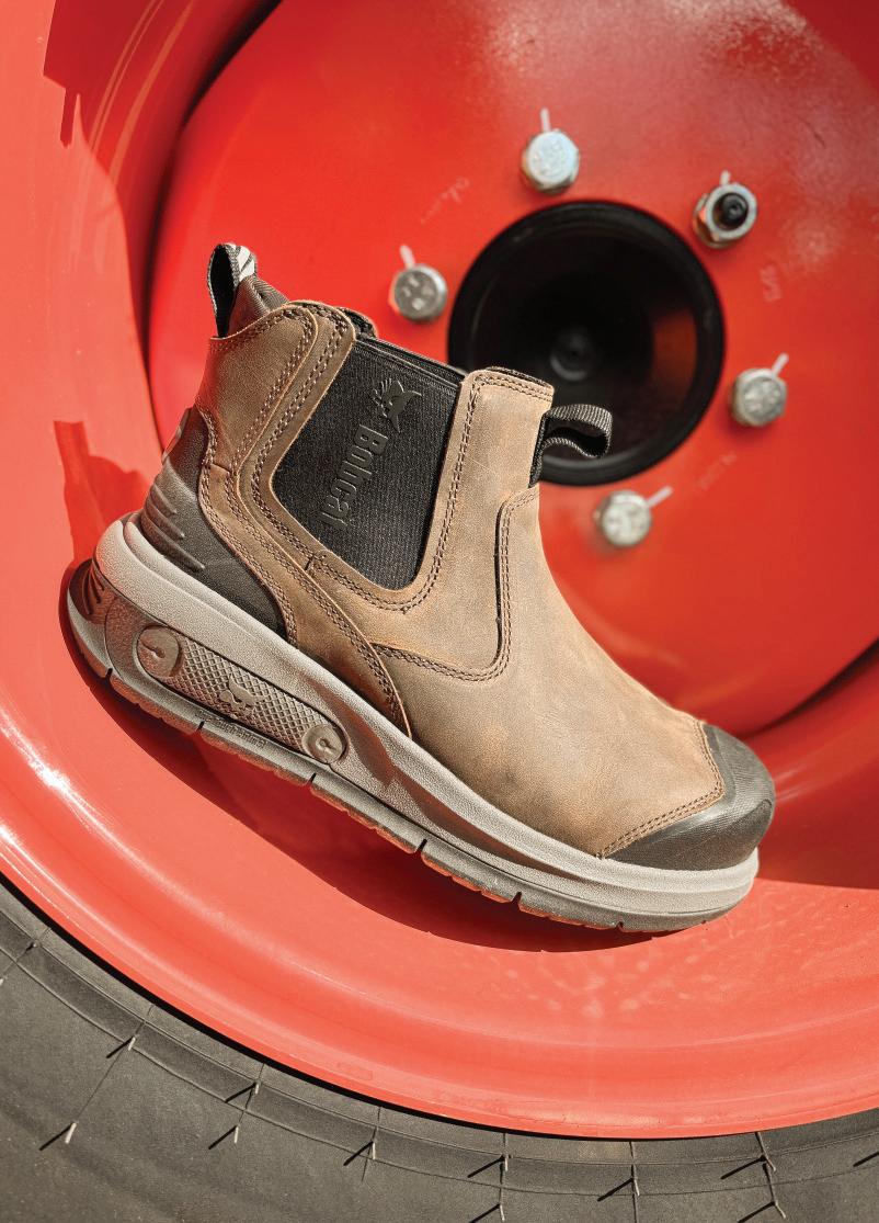 because the boots are designed to echo Bobcat’s equipment, with angular toe caps, machine-inspired tread patterns and rugged styling, they immediately stand out on the shelf and in marketing materials.