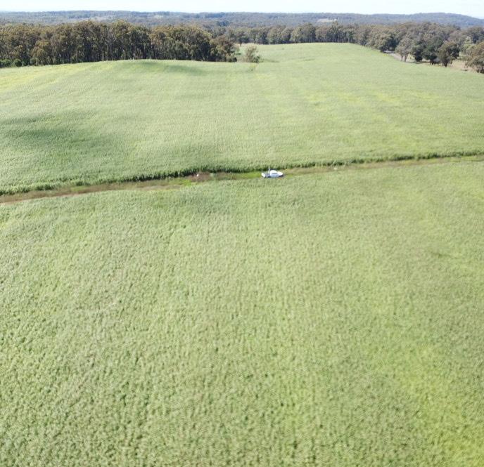 Middle: 55ha of Pioneer MegaFeed forage sorghum for silage production at Greenwood Right: Example of the lane way system at Springdale from the air