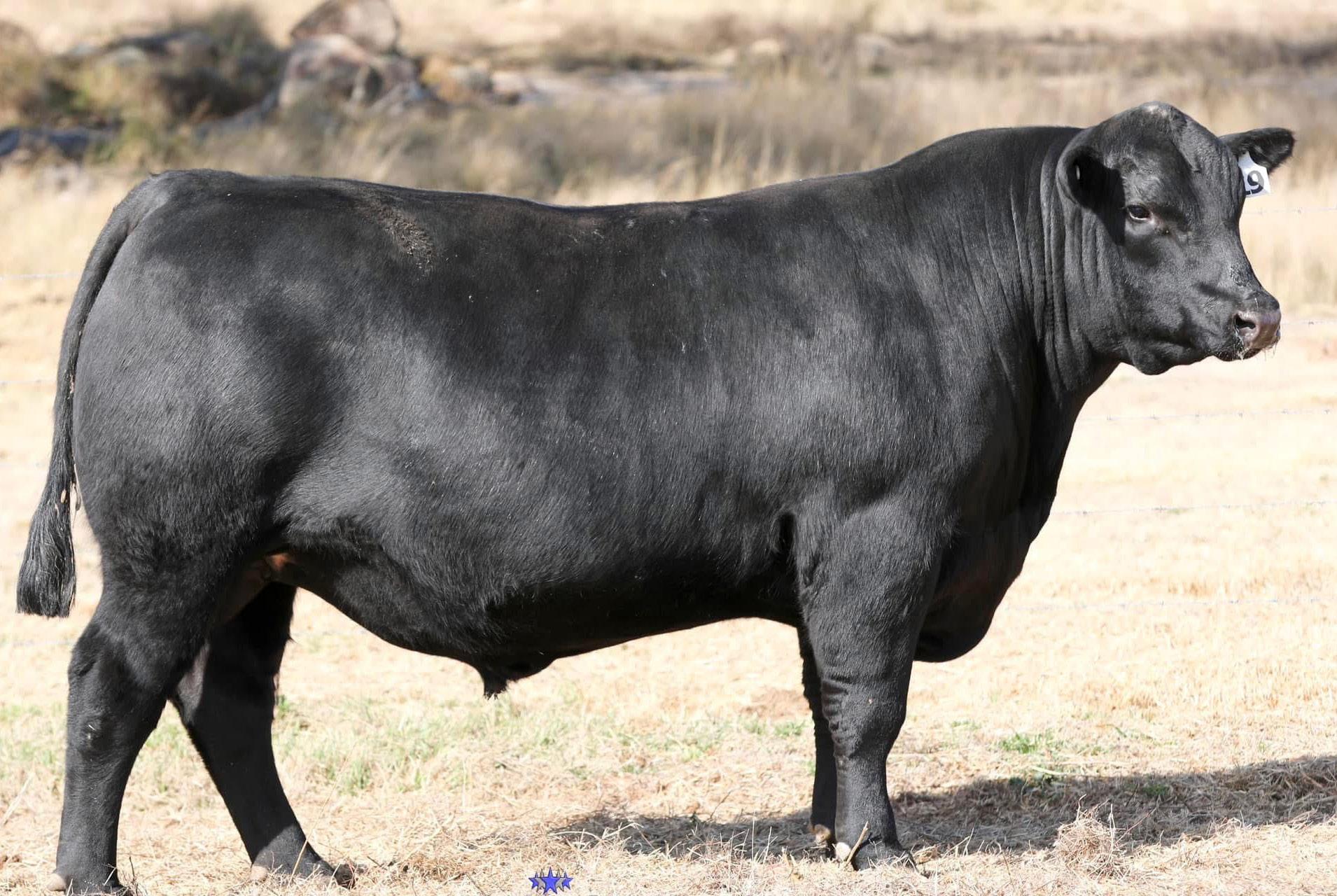 Below left: Glenisa Moe S154, top price bull at the 2023 Glenisa bull sale, selling for $48,000. Image provided by Glenisa Angus