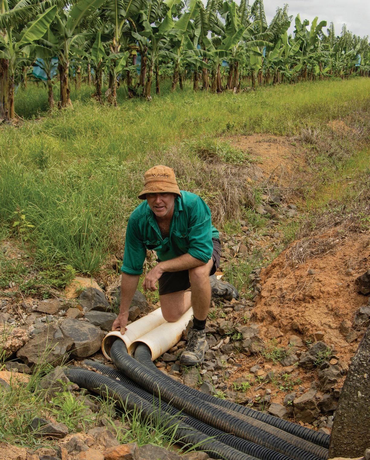 banana growing. 2.5km of ag pipe was laid at a depth of 1.2m underground to aid in the drainage of water during heavy periods of rain, successfully unlocking 28 acres of usable land for more banana trees to be planted.
