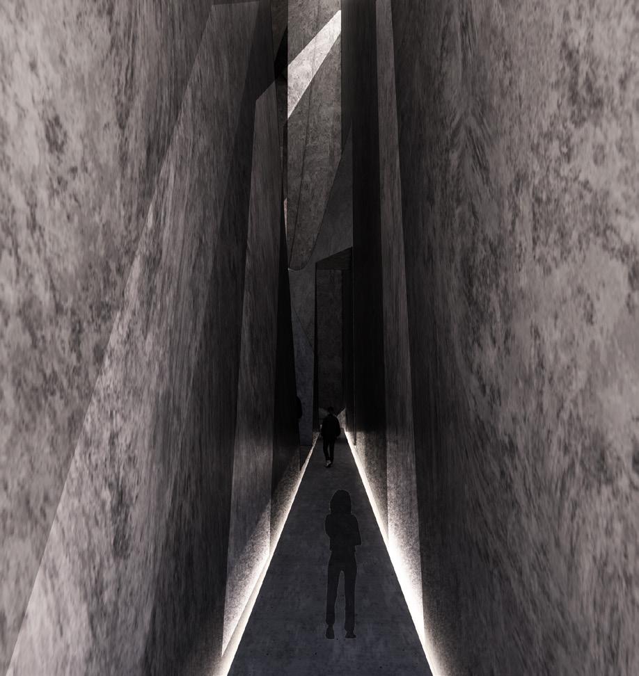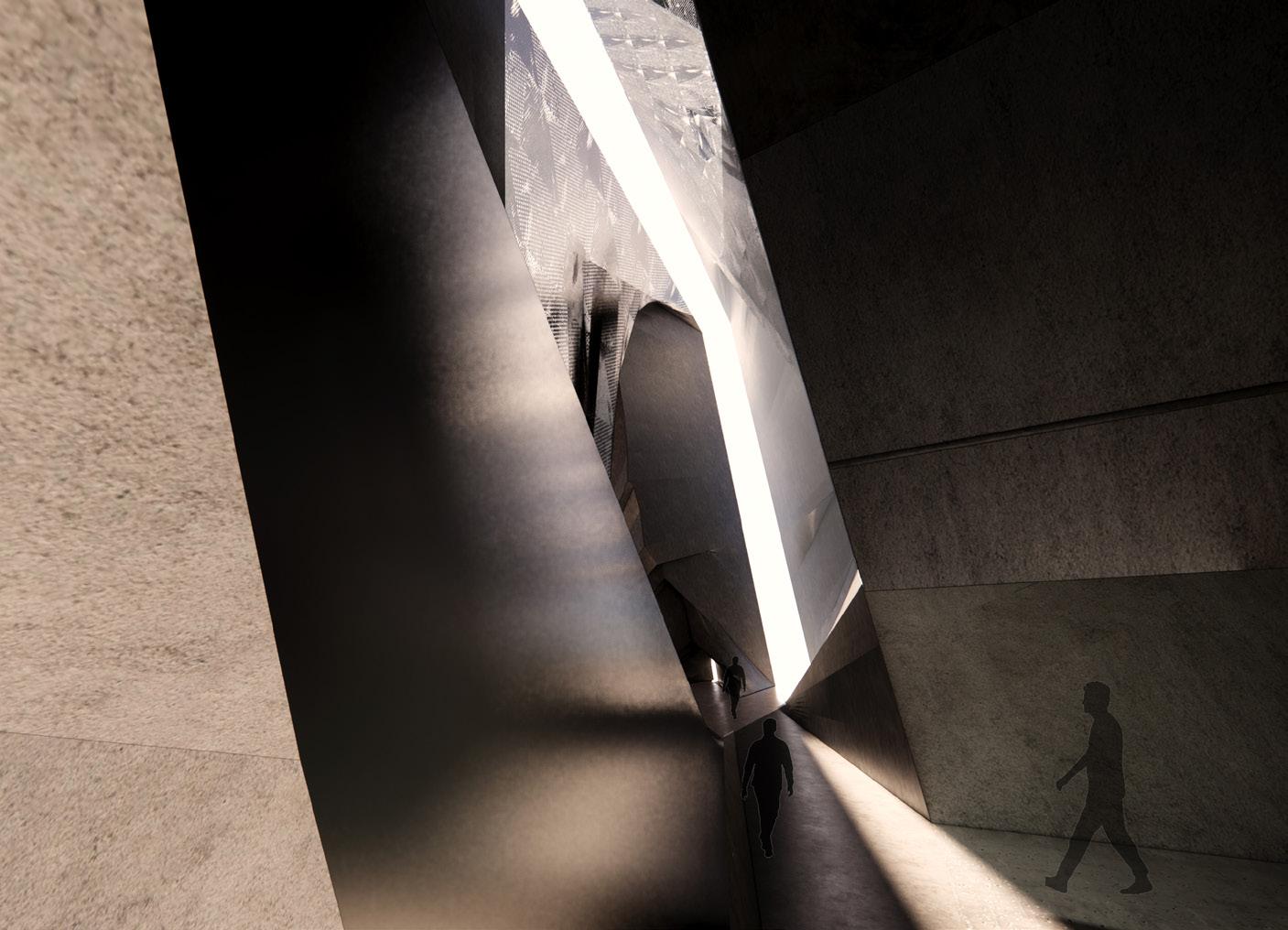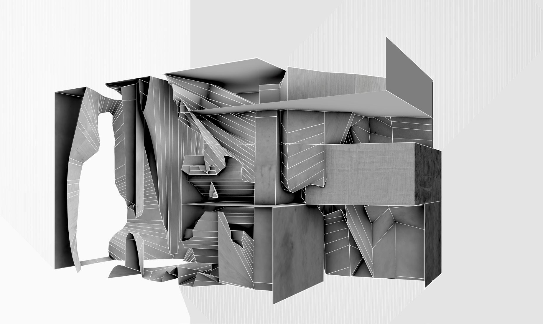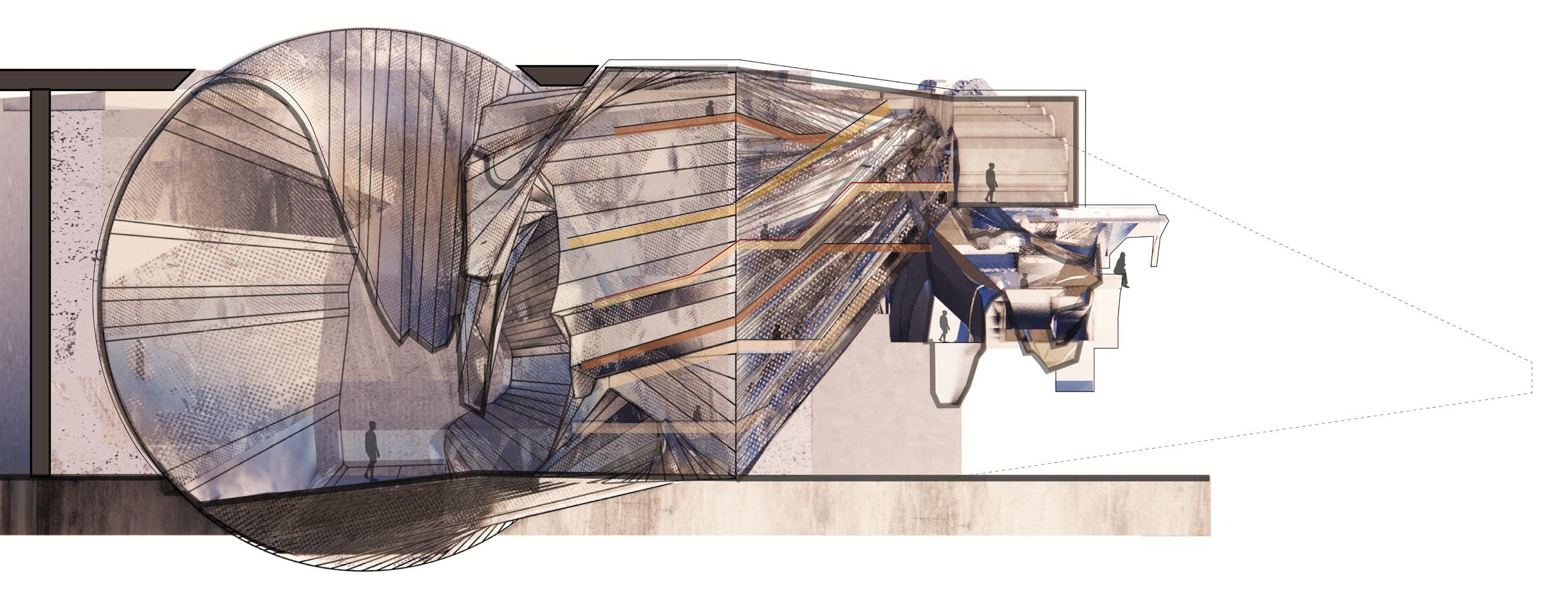 2.It is but the ideas of forms and spaces.The complexities are visible from the outside. The intersection of planes shows the chaoticness with intertwingling thoughts. The structure looks like a free collage of variegated surfaces and materials. The spaces embrace individuality and celebrated the lonesome. It creates many individual spaces in one large space. It gives us a sense of belonging, where the user perceives the space as an extension of themselves. It emphasizes a provocative assemblage of assorted elements, and spaces, in the case of this project attains a monumental quality.