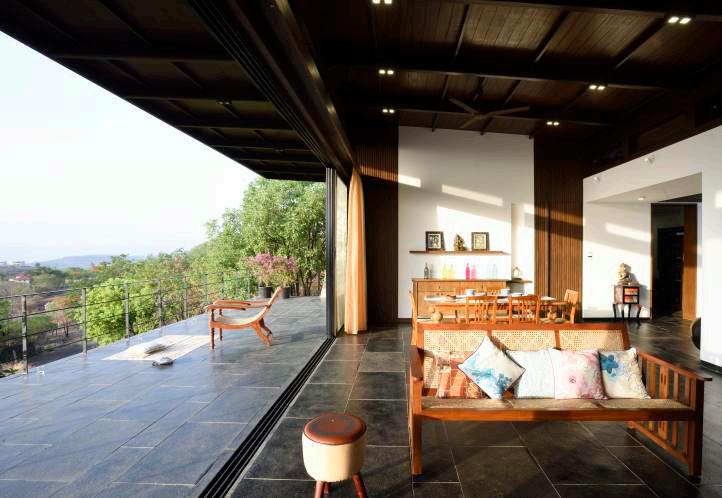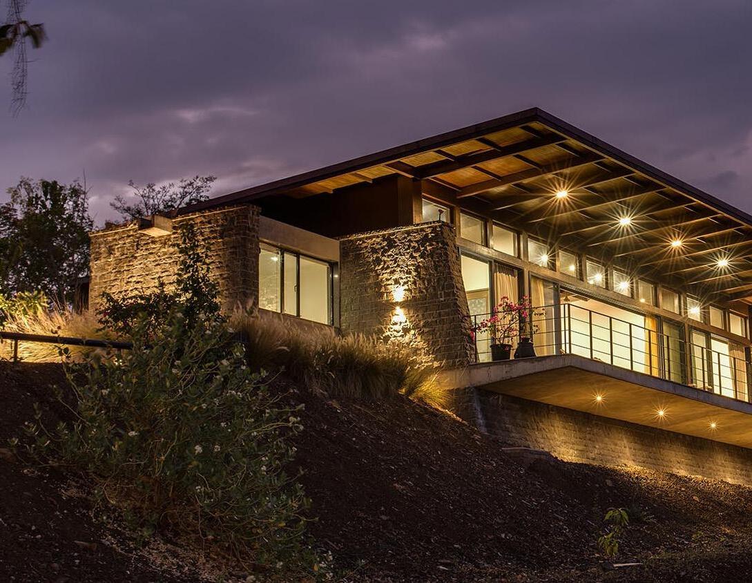The primary aim while designing this house was to provide maximum benefits of the city view and the vast landscape surrounded by the site, while using the sloping topography of the land to its advantage. The linearity in planning is complemented by dynamism in the form. The structure is designed with a concept of |Parallel walls| with all the functional spaces positioned between them.The walls cut through the slopes on the site perpendicularly orienting the entire house in the East- West direction, facing the city and the vast landscape. As a result all the spaces inside enjoy panoramic views of the valley beyond.