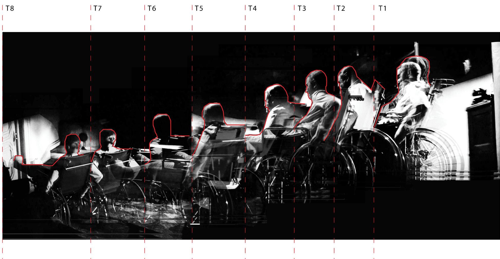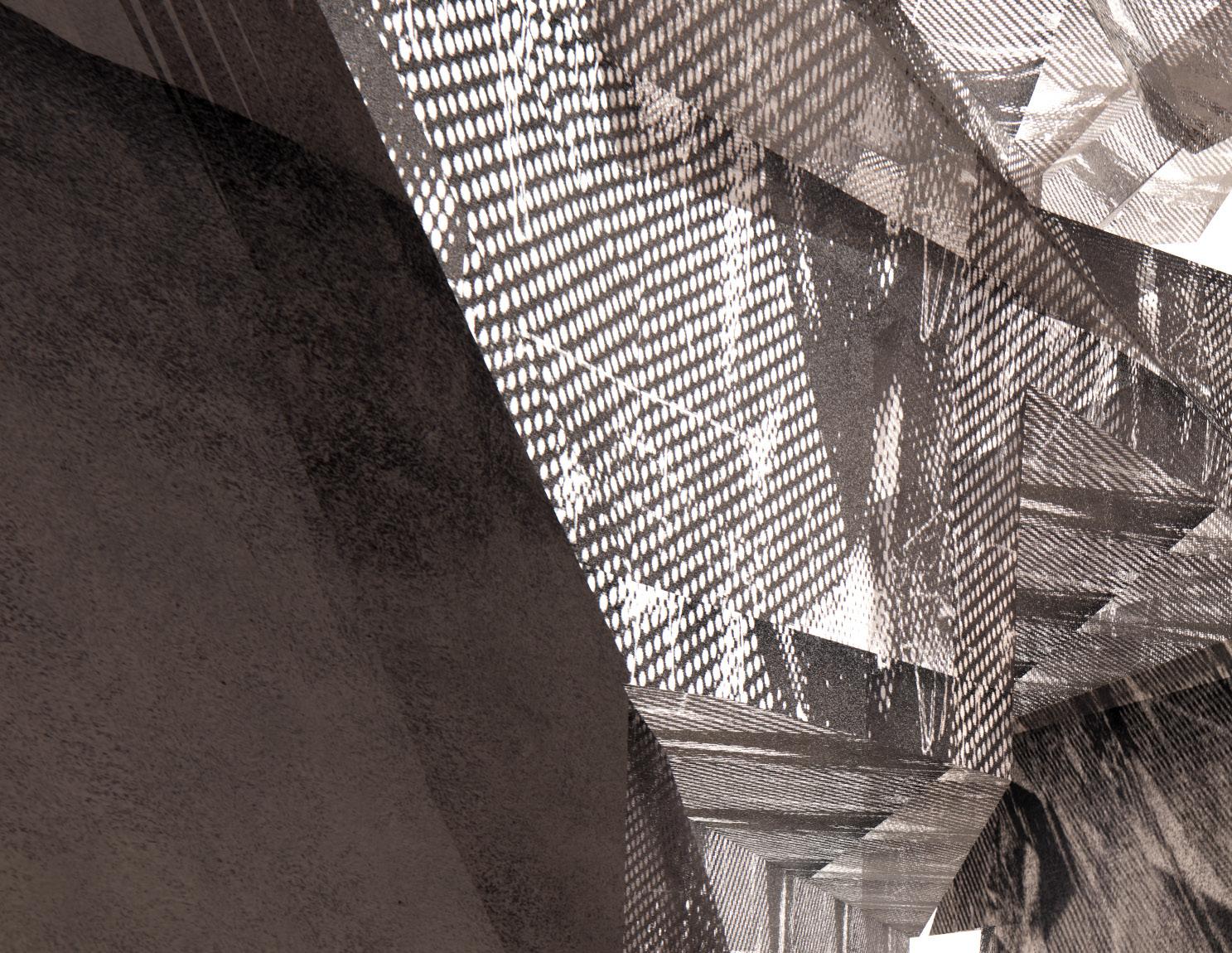 Overlapping each frame of the scene with respect to time, space and motion. The resulting image creates a space through light and shadow.
